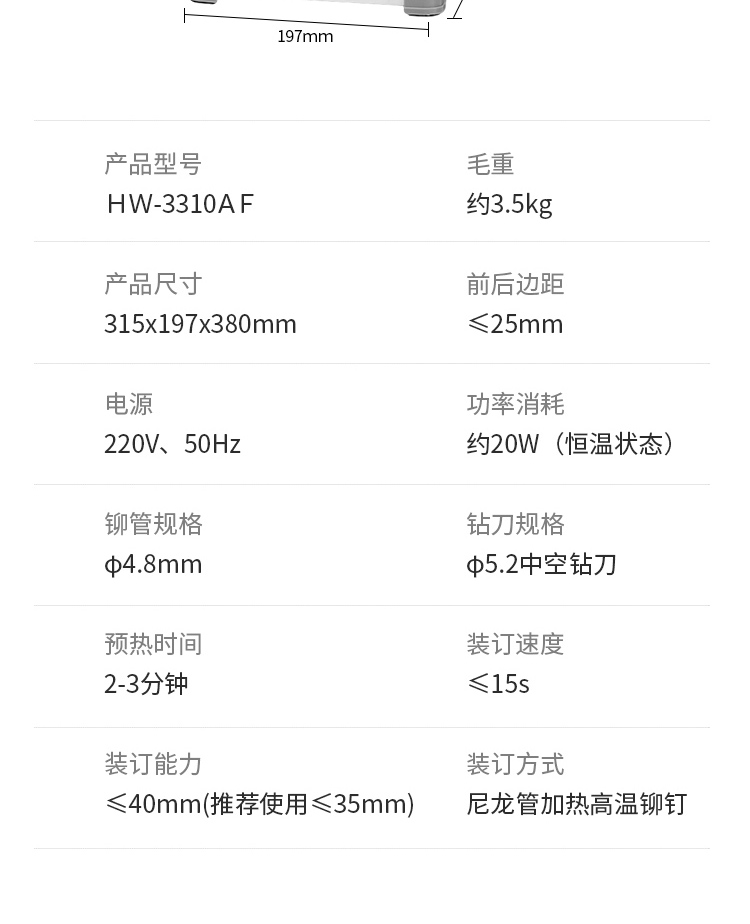 漢王(Hanvon)HW-3310AF會(huì)計(jì)財(cái)務(wù)憑證裝訂機(jī) 熱熔膠鉚管 檔案標(biāo)書文件打孔機(jī) 雙手柄省力型