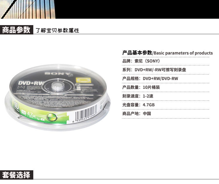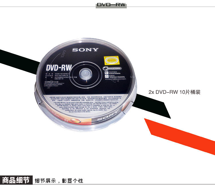 索尼(SONY)DVD-RW可擦寫刻錄盤(10片裝)