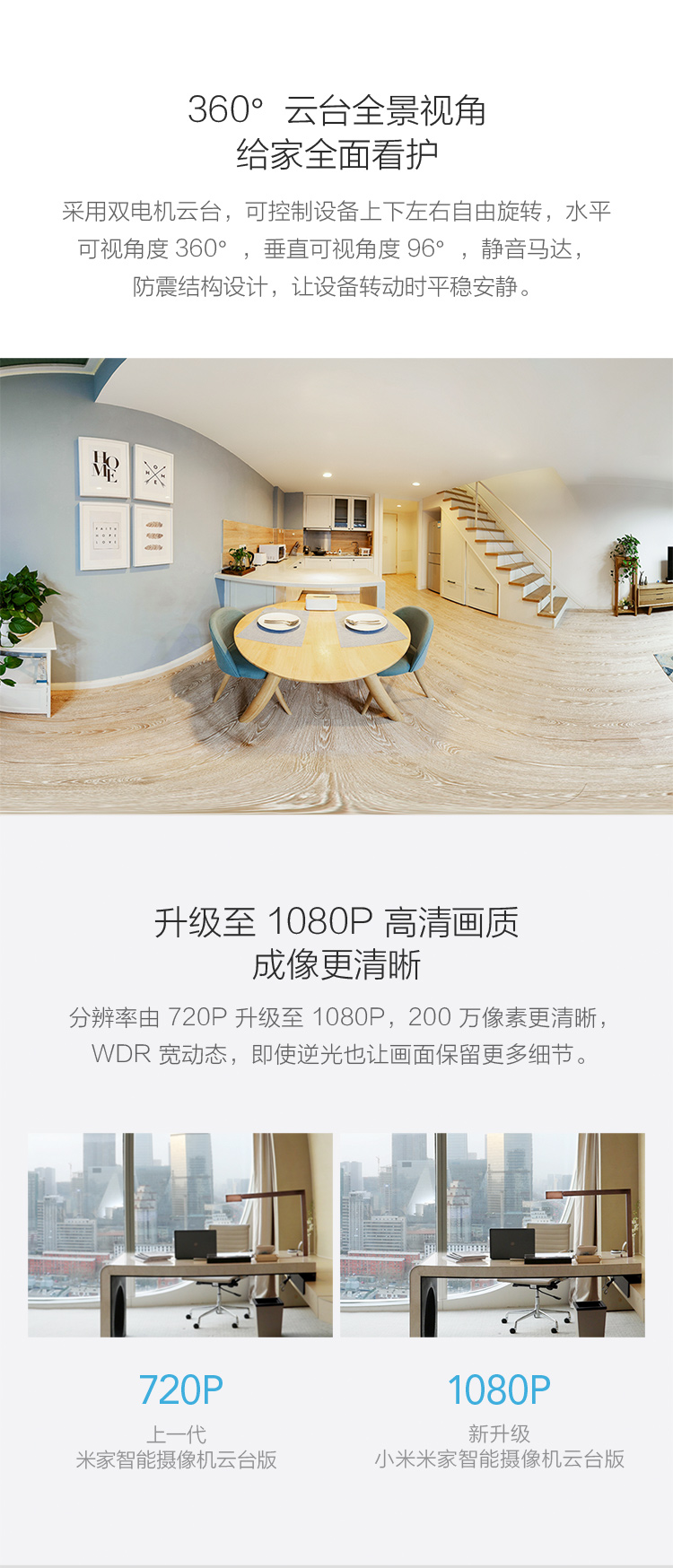 小米(MI)米家智能攝像頭云臺版1080P監(jiān)控高清360度紅外夜視增強移動監(jiān)測攝像機 云臺版1080P + 64G高速卡