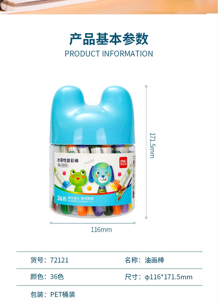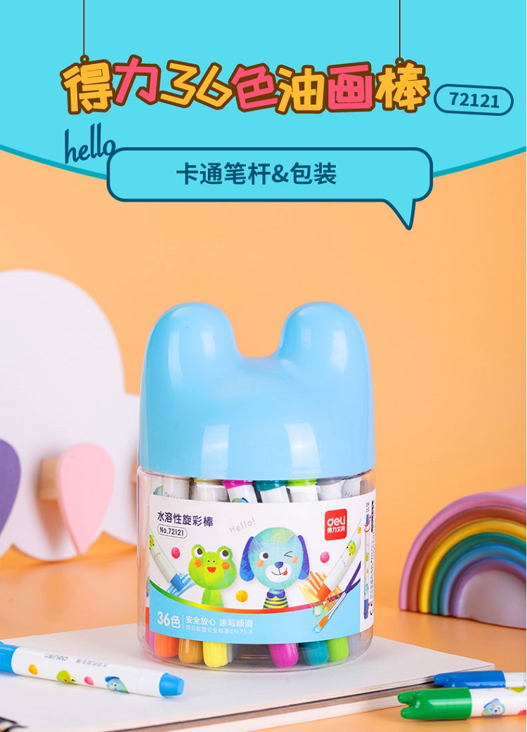 得力(deli) 36色 水溶性油畫棒 可水洗蠟筆 72121