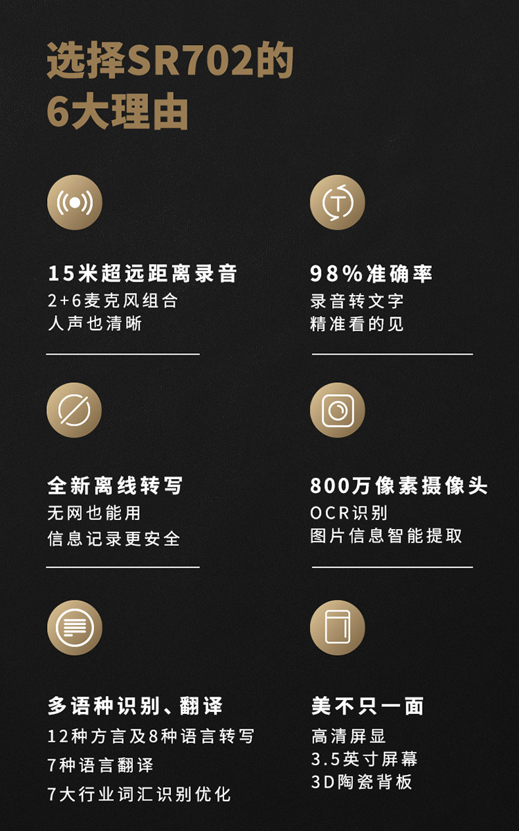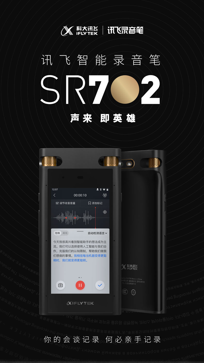 科大訊飛AI智能錄音筆SR702終身免費(fèi)轉(zhuǎn)寫(xiě) 中英文邊錄邊譯 離線轉(zhuǎn)寫(xiě)保存 OCR提取圖片文本 32G+云儲(chǔ)存星空灰