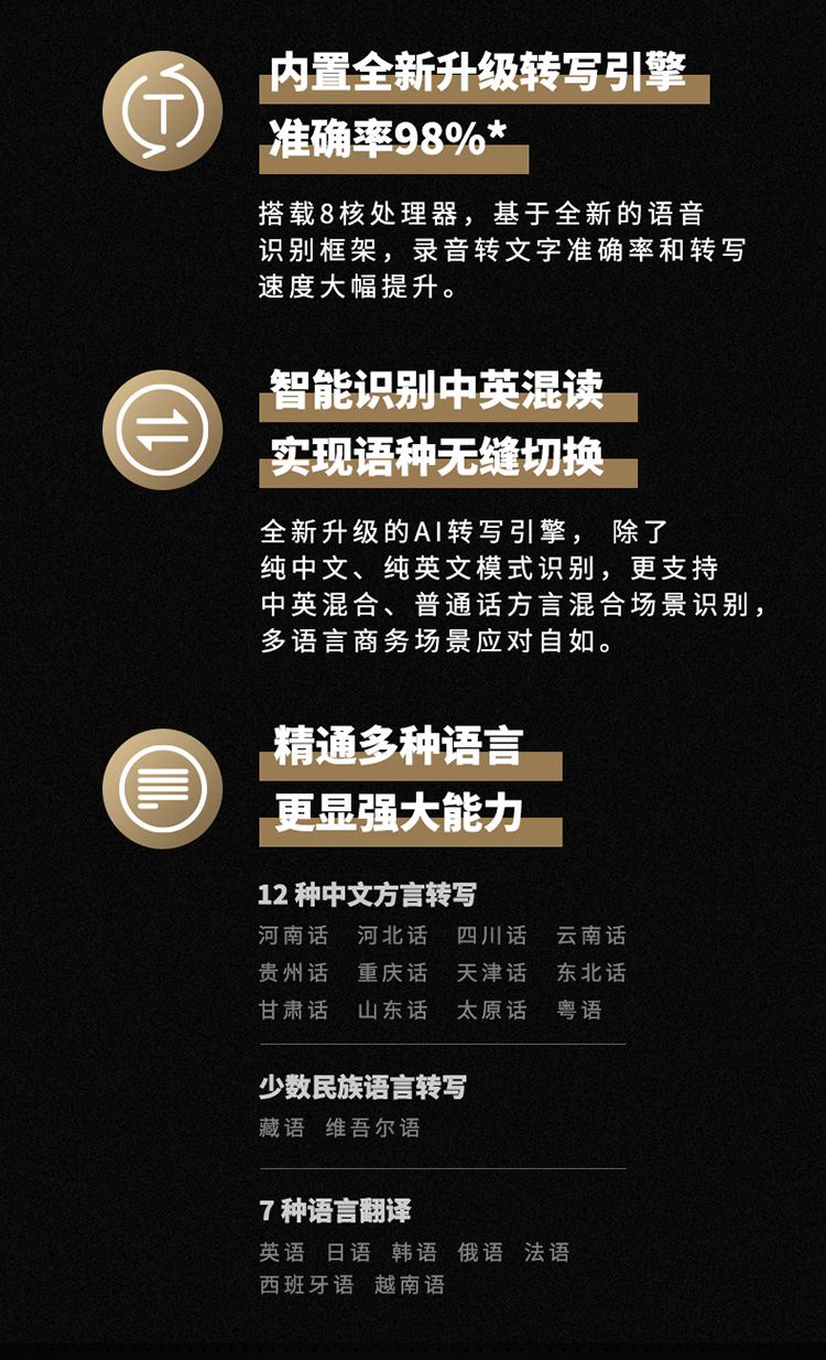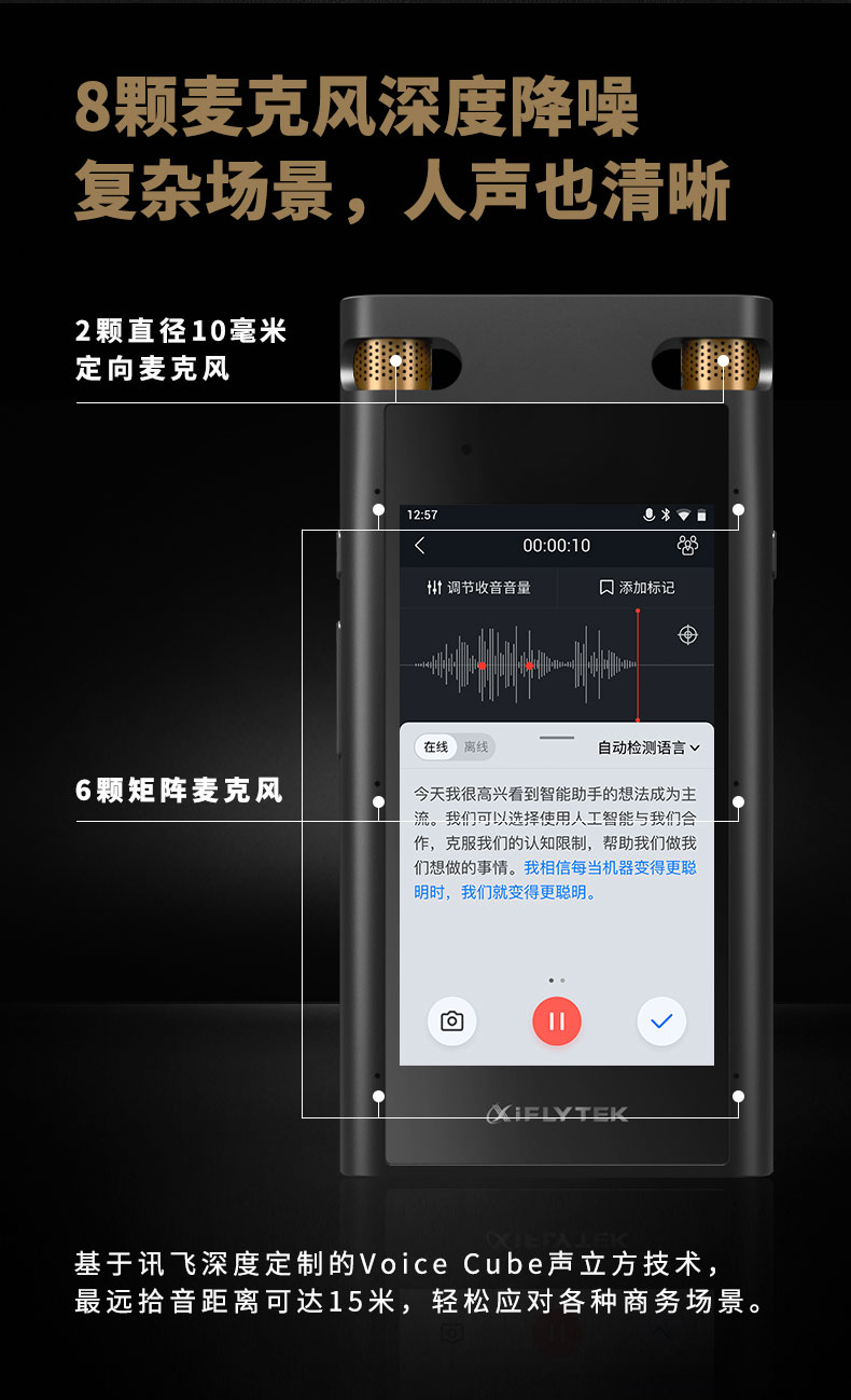 科大訊飛AI智能錄音筆SR101 免費(fèi)轉(zhuǎn)寫(xiě) 中英文實(shí)時(shí)互轉(zhuǎn) 觸摸屏融合按鍵操作 專(zhuān)業(yè)降噪 16G+云儲(chǔ)存 星空灰