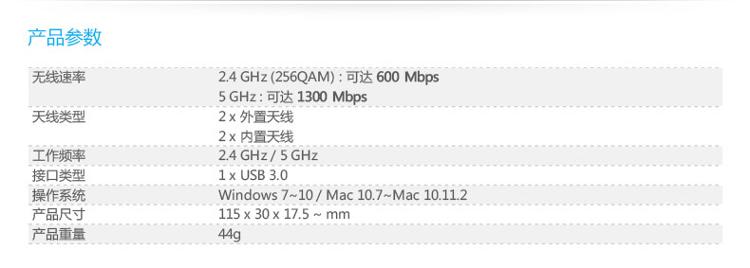 華碩(ASUS)USB-AC68 AC雙頻低輻射無線網(wǎng)卡
