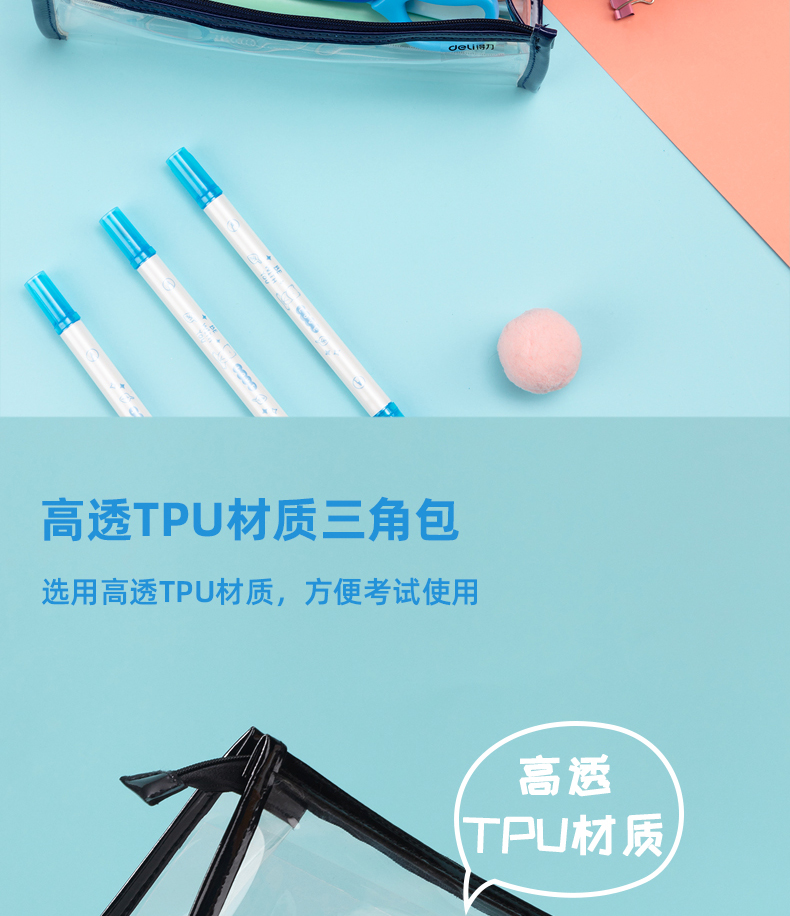 得力(deli)大容量防水學(xué)生鉛筆盒文具盒 黑色 67027