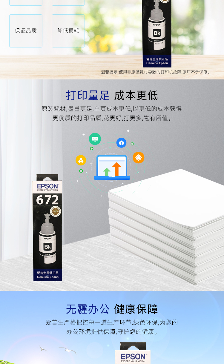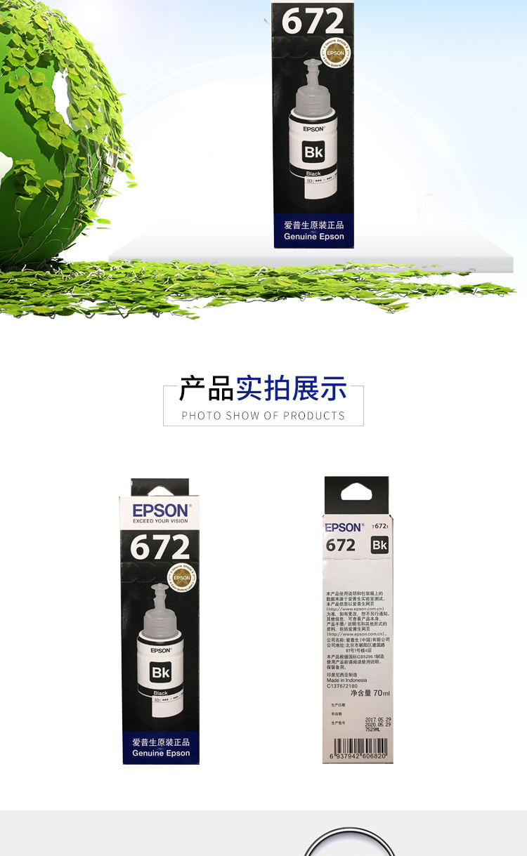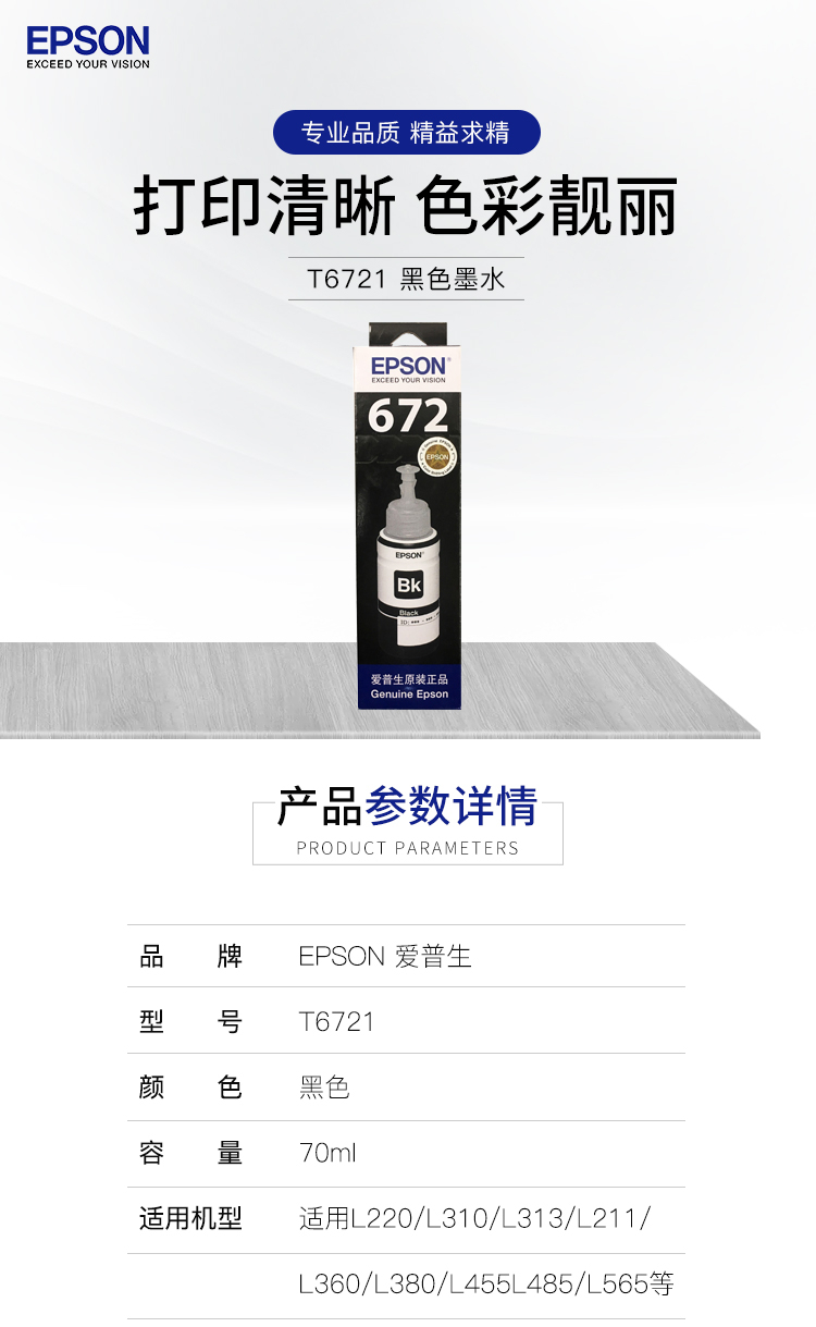 愛普生(EPSON)T6721 墨倉打印機墨水 70ML 黑色
