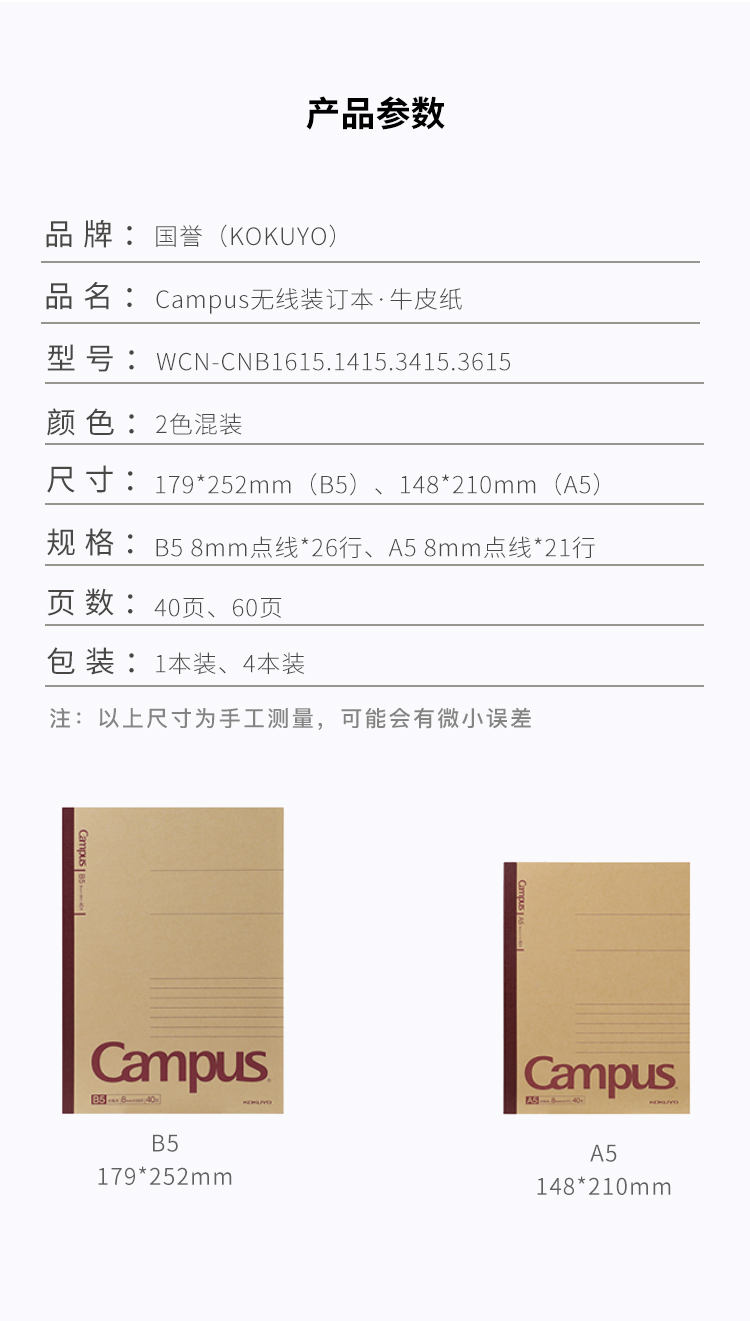 國譽(KOKUYO)WCN-CNB1415 Campus無線裝訂本 B5/40頁