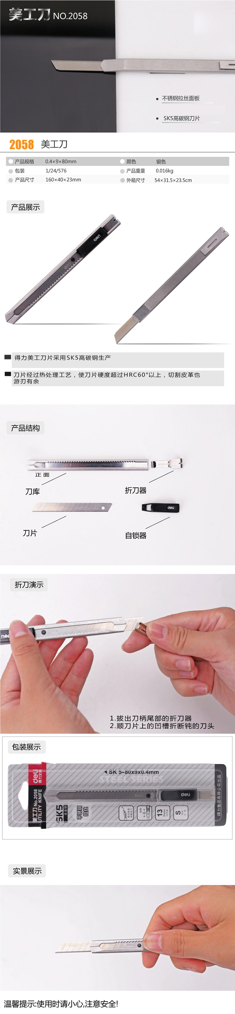 得力(deli) 2058 金屬小號美工刀 碳鋼材質