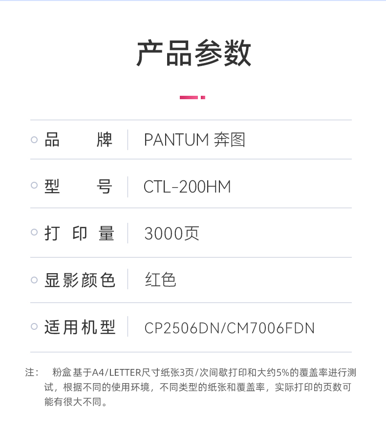 奔圖(PANTUM)品紅色粉盒CTL-200HM