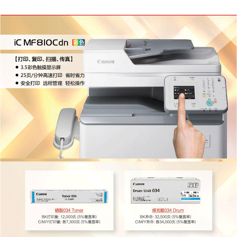 佳能(Canon) MF 810cdn imageCLASS 彩色激光多功能一體機(打印復(fù)印掃描傳真)