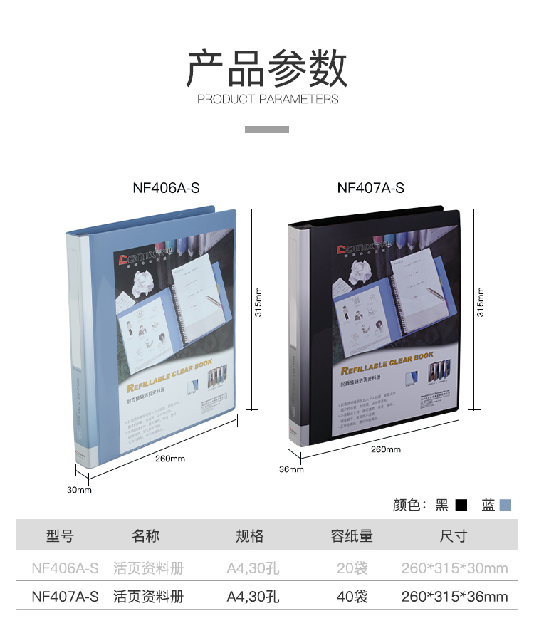 晨光(M&G)ADM95097 插袋檔案塑料文件冊多頁資料冊 40頁 藍(lán)色 單個裝