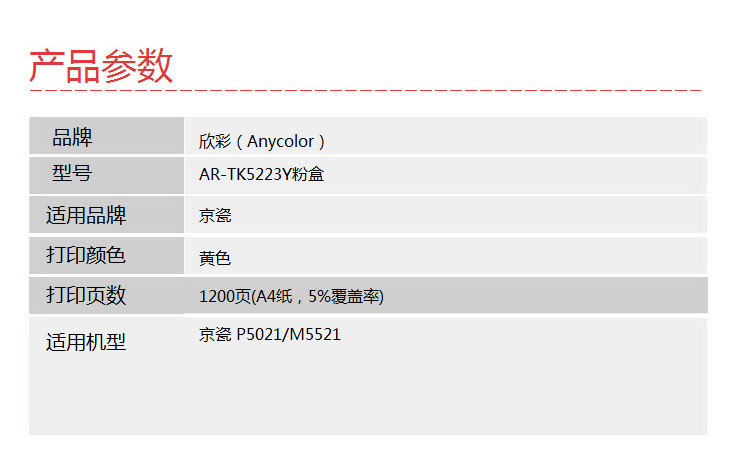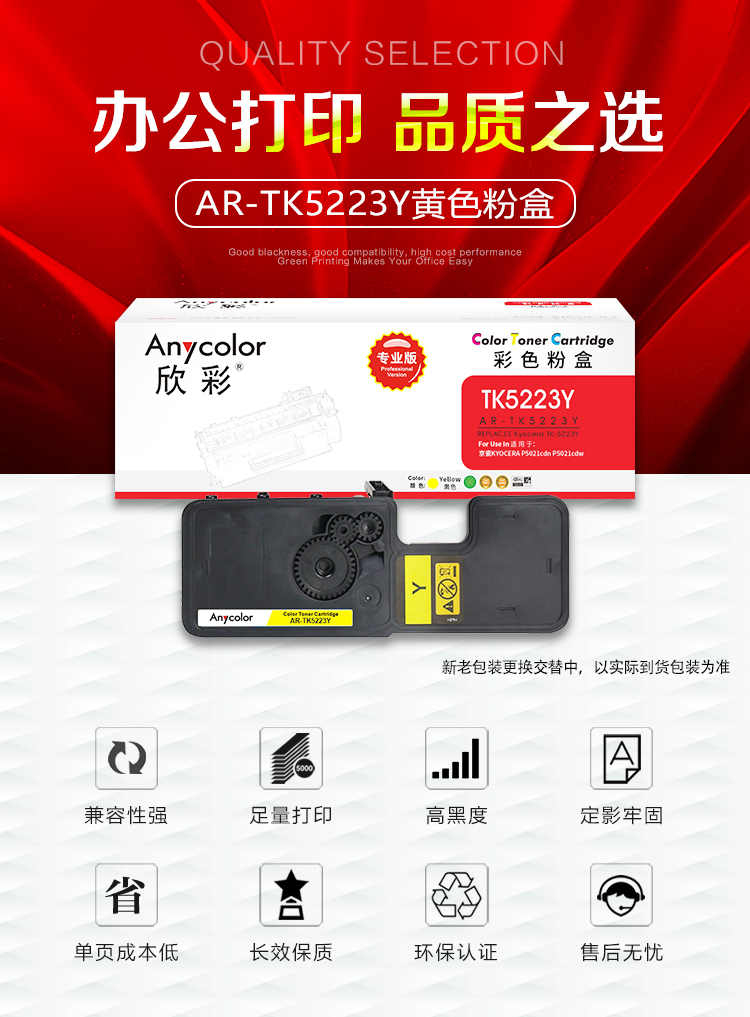 欣彩AR-TK5223Y墨粉盒專(zhuān)業(yè)版 適用京瓷KYOCERA TK-5223Y P5021cdn P5021cdw