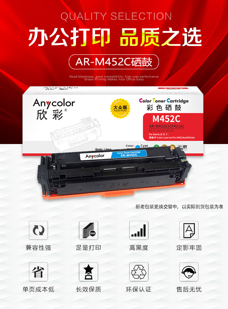 欣彩 CF411A 410A硒鼓 大眾版 AR-M452C藍(lán)色