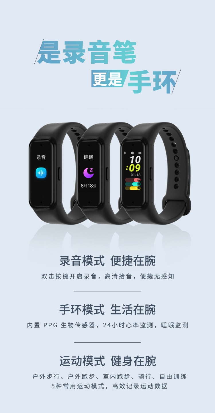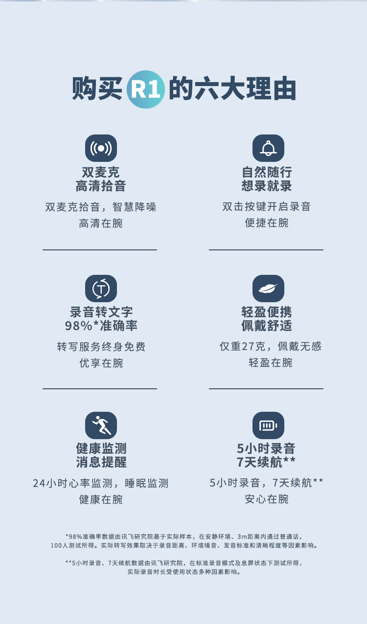 科大訊飛(iFLYTEK) 科大訊飛腕式錄音筆R1智能SR錄音實(shí)時(shí)轉(zhuǎn)文字專業(yè)高清降噪免費(fèi)轉(zhuǎn)寫(xiě)運(yùn)動(dòng)手環(huán)