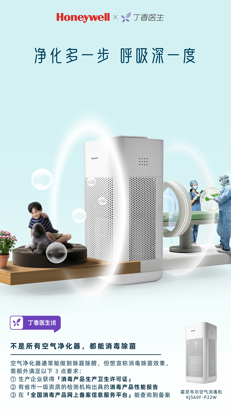 霍尼韋爾(Honeywell) KJ560F-P22W空氣凈化器 UV消毒除菌除甲醛除霧霾空氣消毒機(jī)
