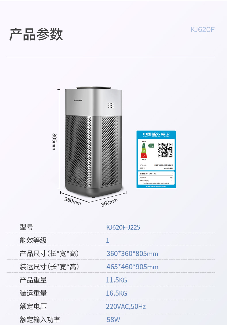 霍尼韋爾(Honeywell) KJ620F-J22S空氣消毒機(jī)UV消毒除菌除甲醛異味空氣凈化器