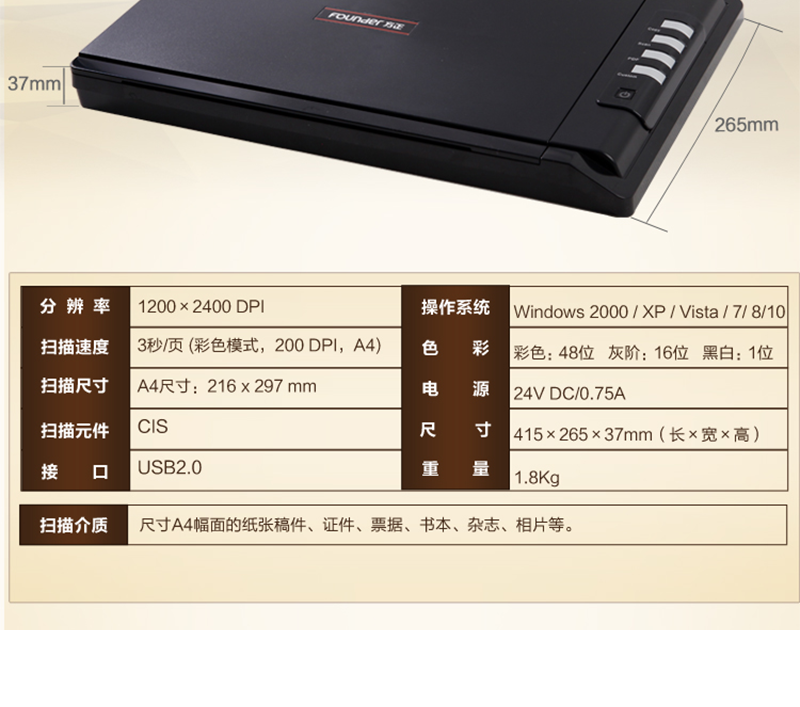 方正(Fouder) T400H A4平板掃描儀 橫向開蓋