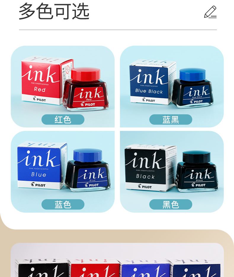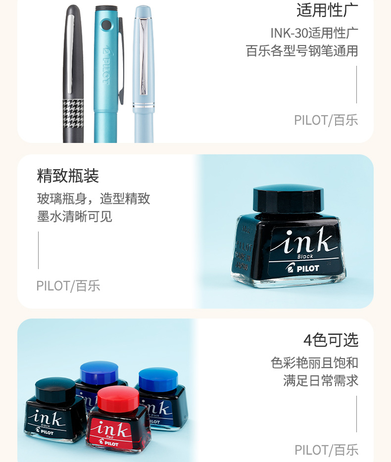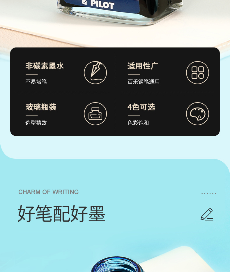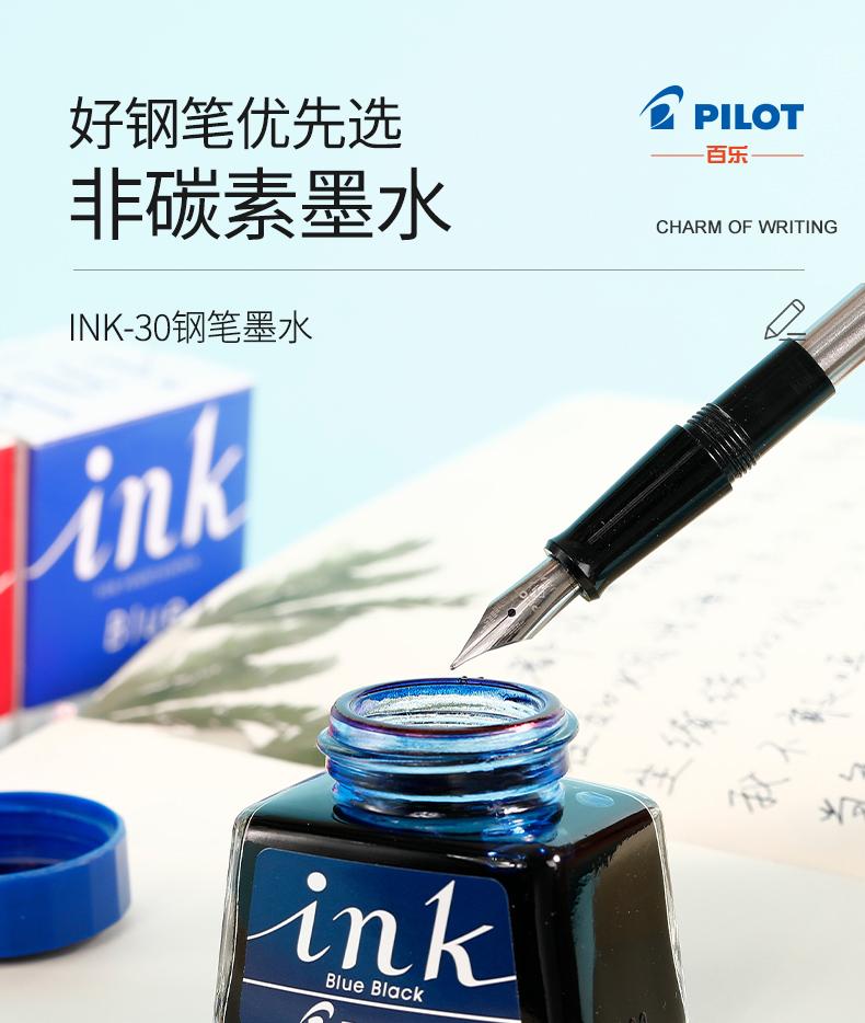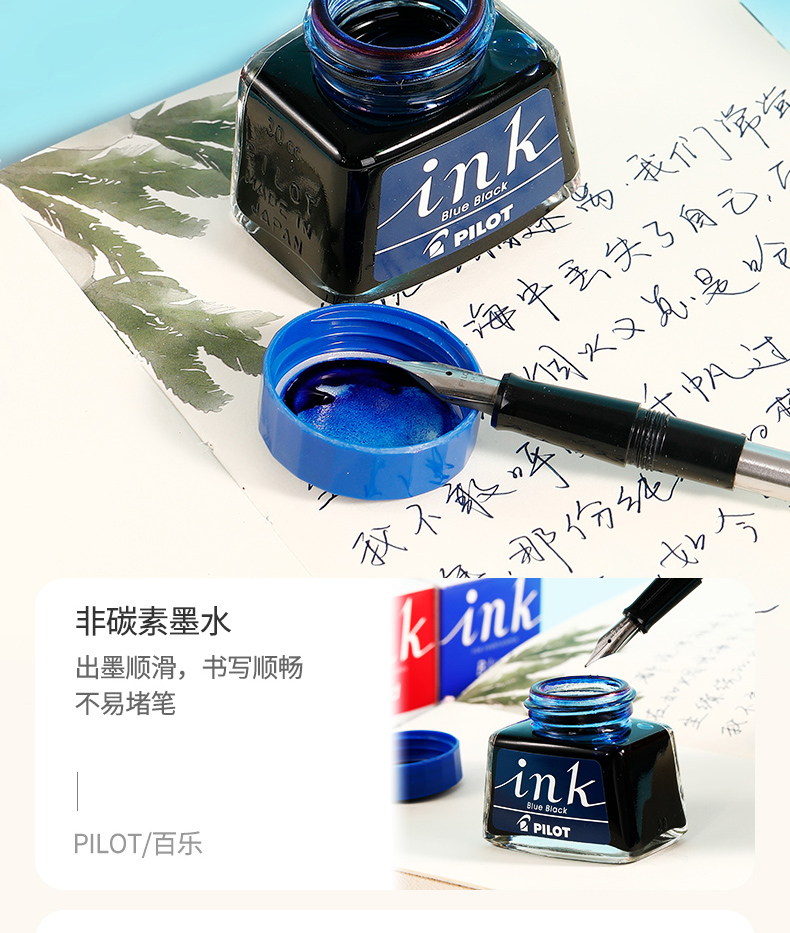 百樂(PILOT)非碳素墨水 不堵筆鋼筆墨水30ml 藍黑INK-30-BB