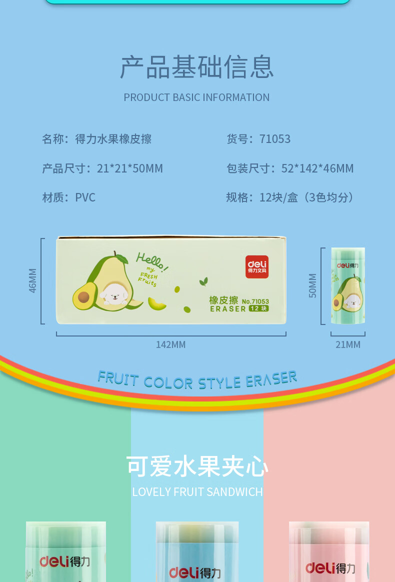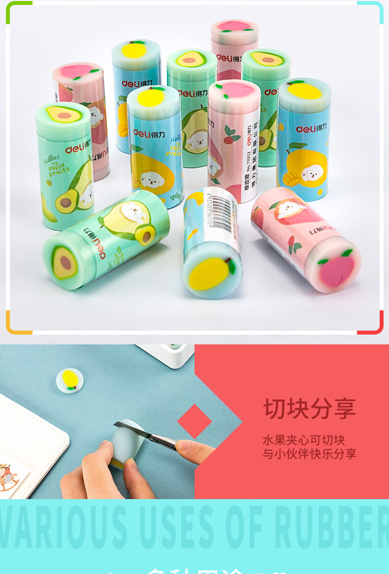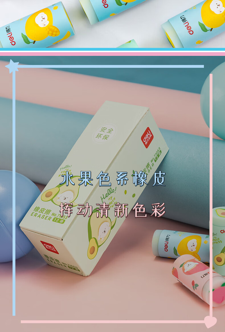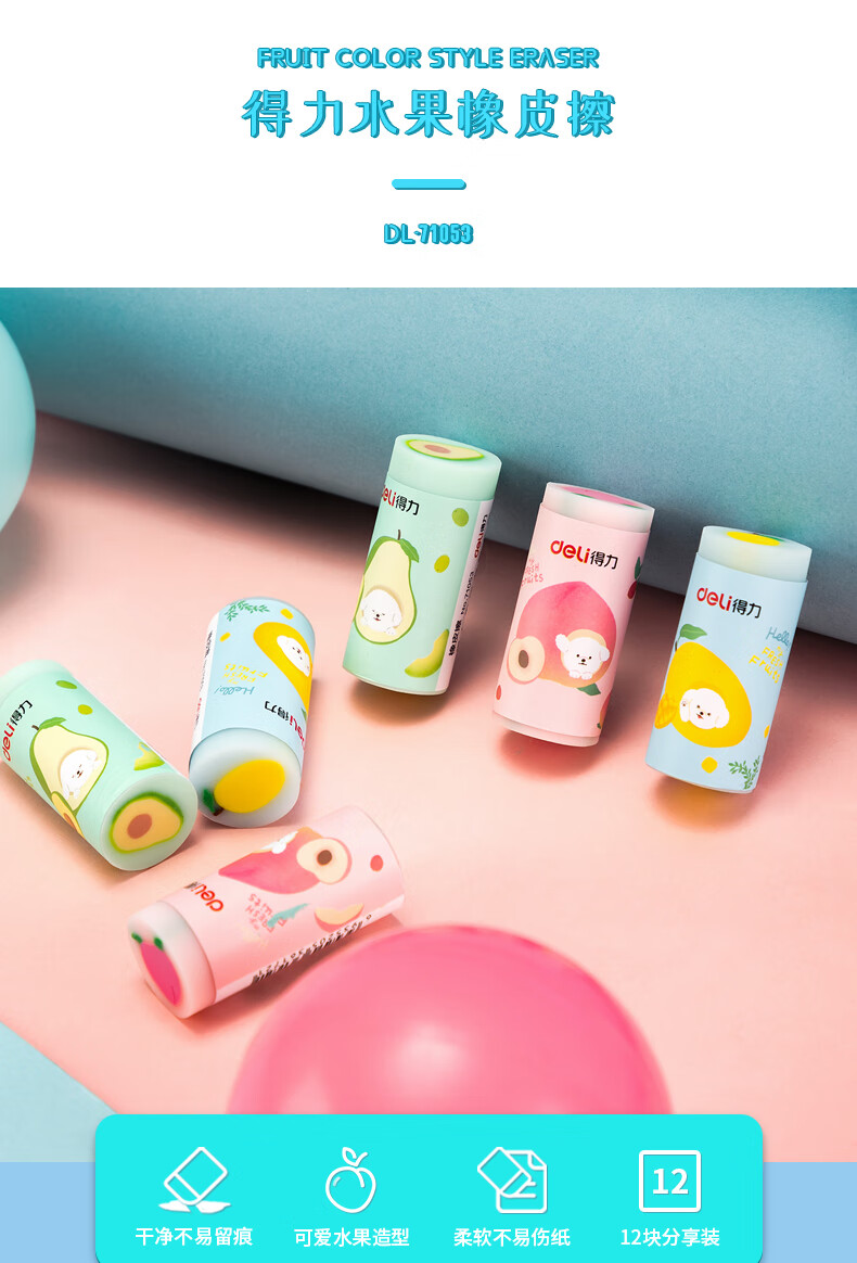 得力(deli)12塊水果橡皮擦 學(xué)生考試?yán)L圖橡皮 美術(shù)畫畫橡皮 71053