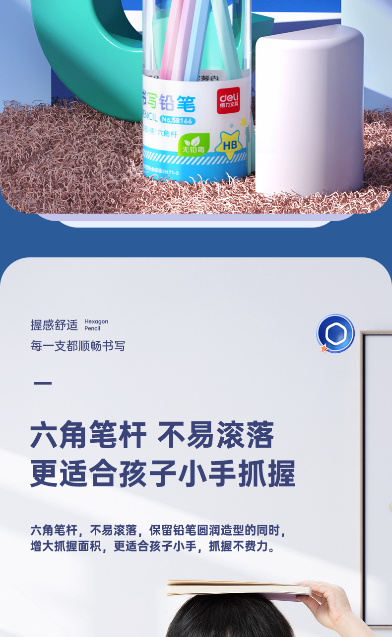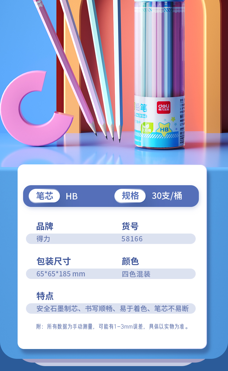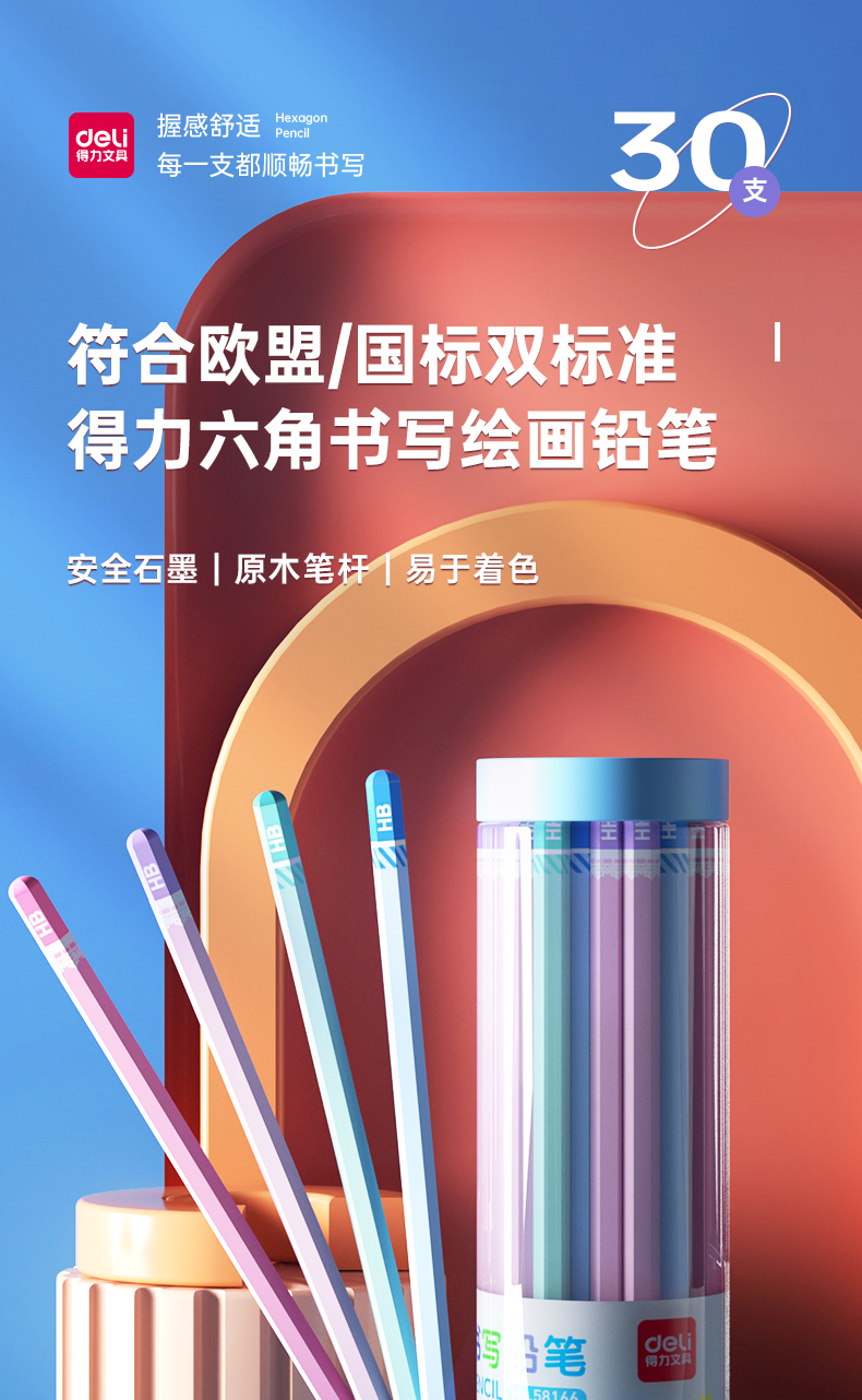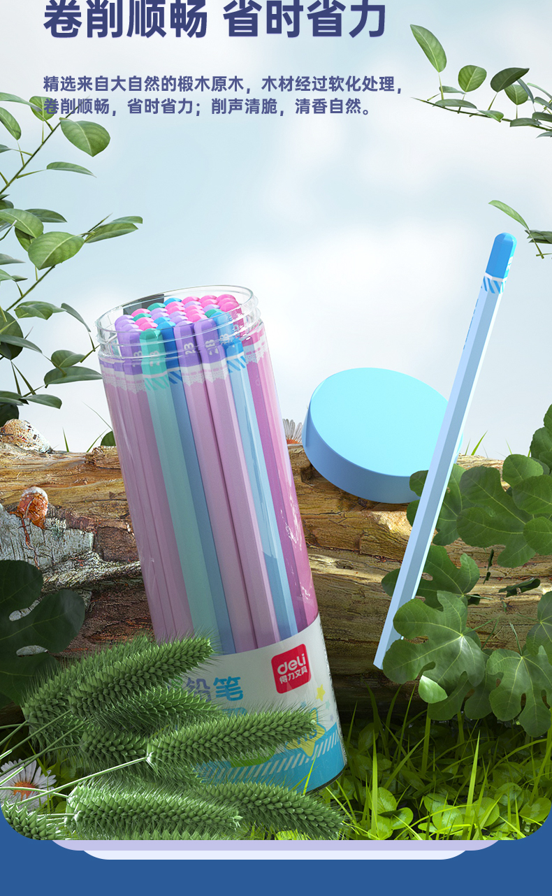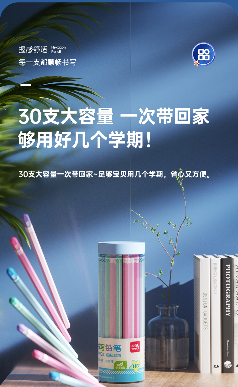 得力(deli)30支桶裝HB學(xué)生六角桿鉛筆素描繪畫筆木質(zhì)兒童書寫鉛筆 58166
