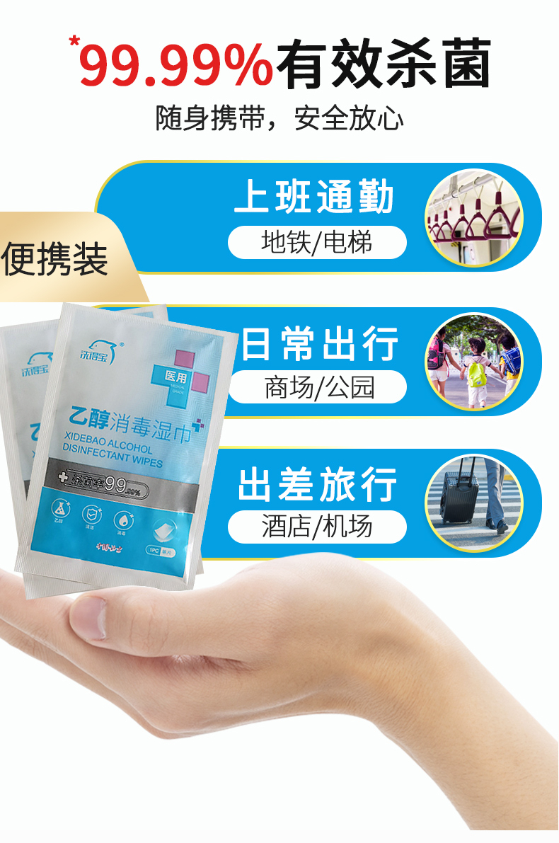 洗得寶 75%酒精濕巾 一次性消毒酒精棉片大號 單片獨立包裝 免洗洗手消毒液濕巾