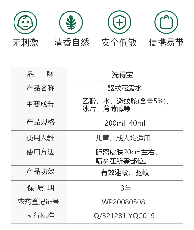 洗得寶 驅(qū)蚊花露水40ml便捷裝驅(qū)蚊噴霧