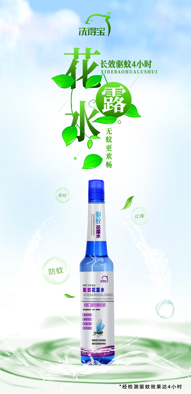 洗得寶 驅(qū)蚊花露水200ml/瓶