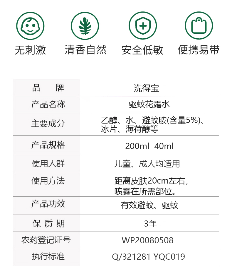 洗得寶 驅(qū)蚊花露水40ml便捷裝驅(qū)蚊噴霧