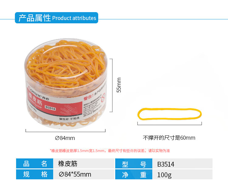 齊心(Comix) 100g桶裝辦公耐用彈力橡皮筋/橡膠圈/乳膠圈 辦公用品 B3514