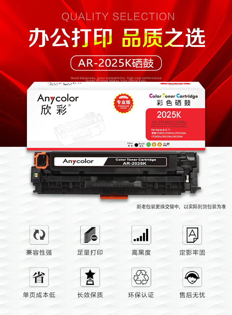 欣彩(Anycolor)AR-2025K(專業(yè)版)CC530A黑色硒鼓 304A 適用惠普HP Color LaserJet CP2025 2320