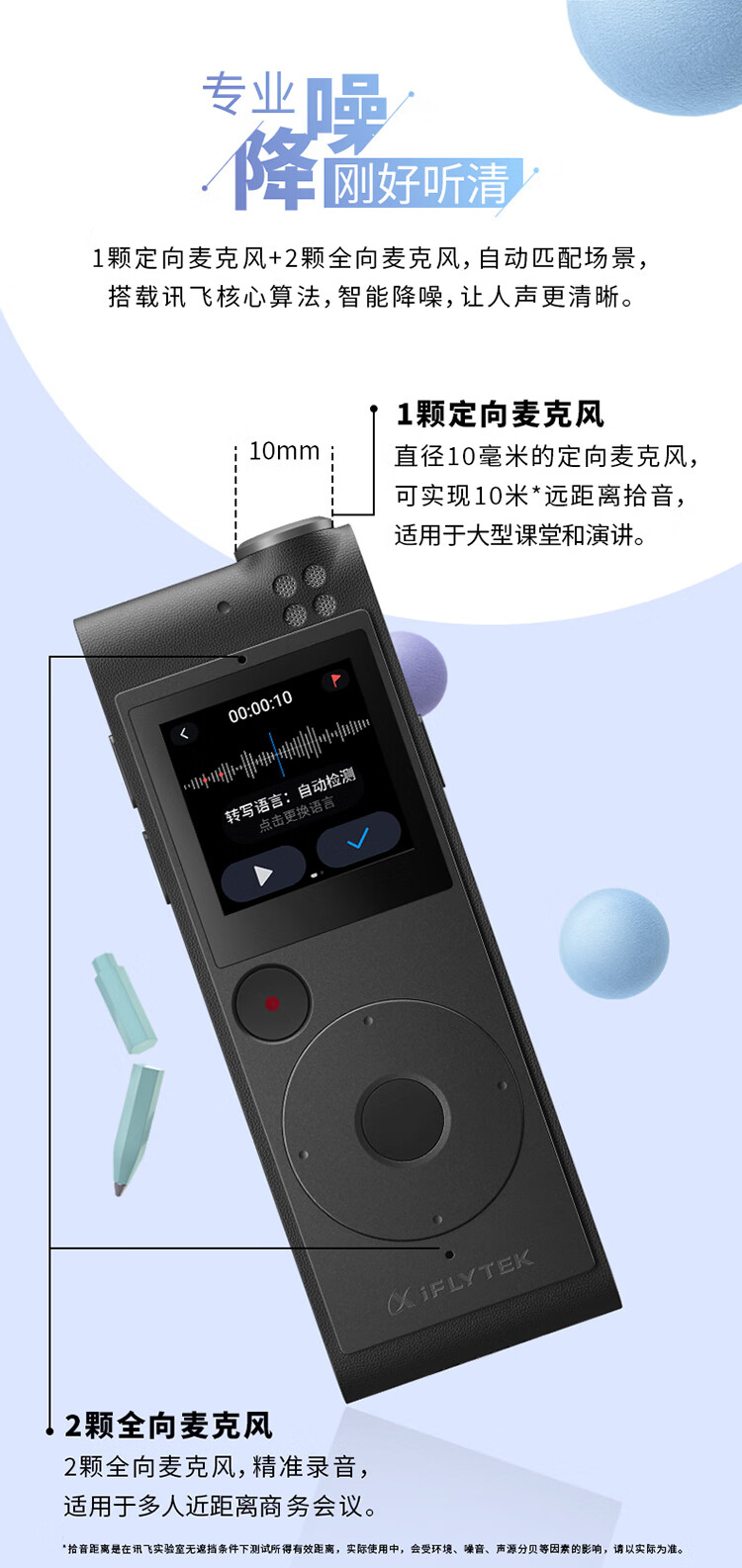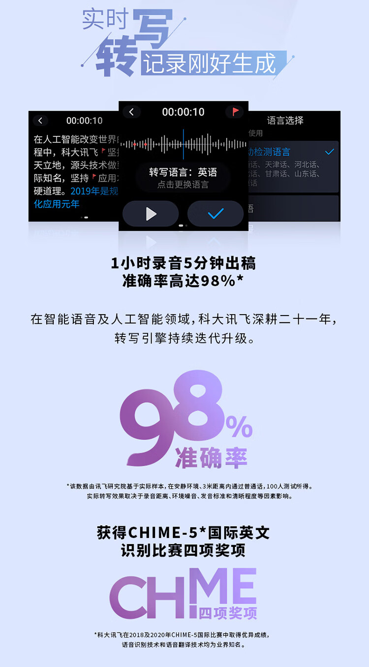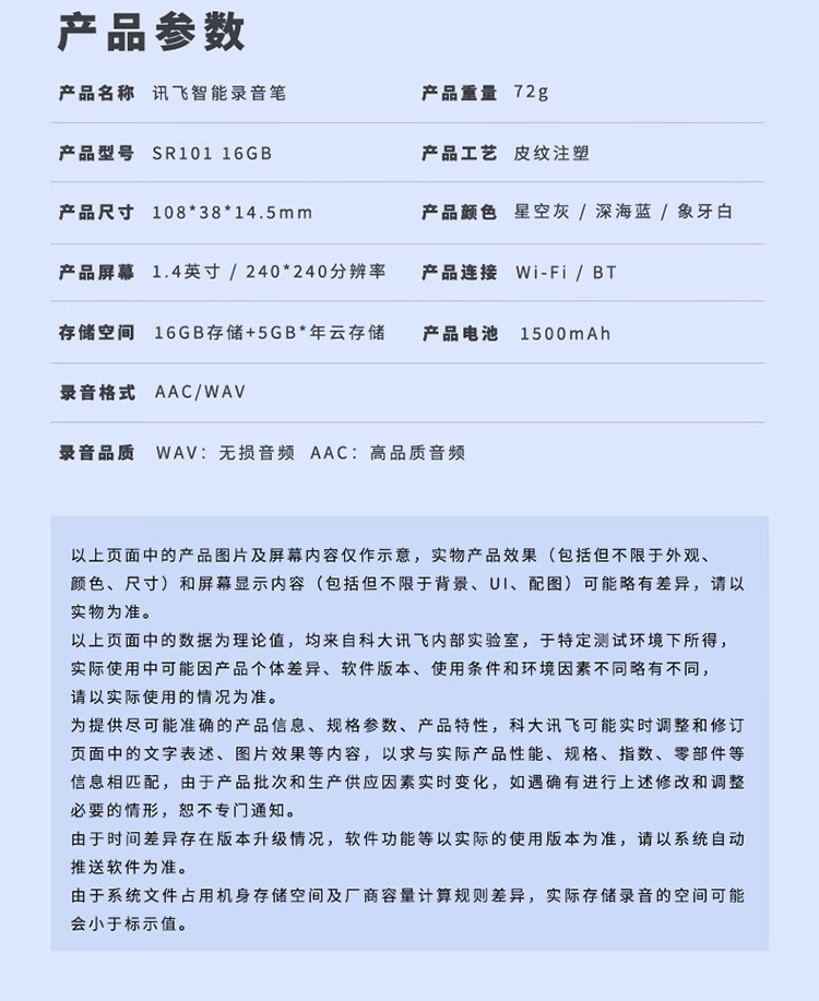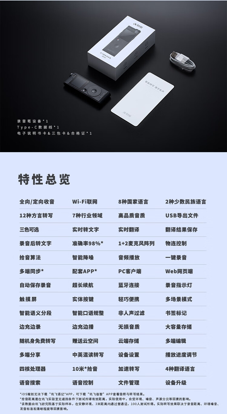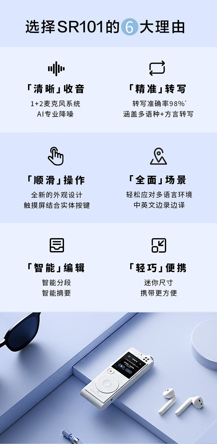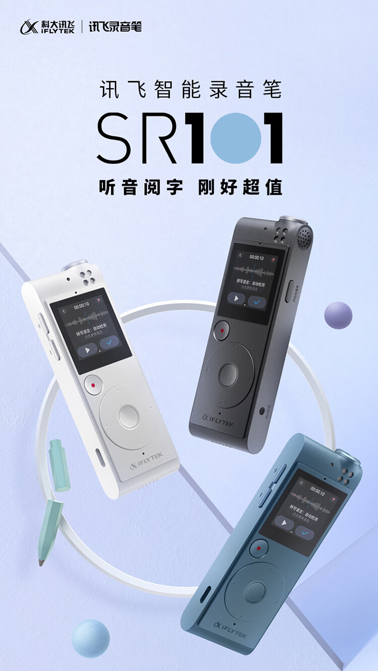科大訊飛AI智能錄音筆SR101 免費(fèi)轉(zhuǎn)寫 中英文實(shí)時(shí)互轉(zhuǎn) 觸摸屏融合按鍵操作 專業(yè)降噪 16G+云儲(chǔ)存 星空灰