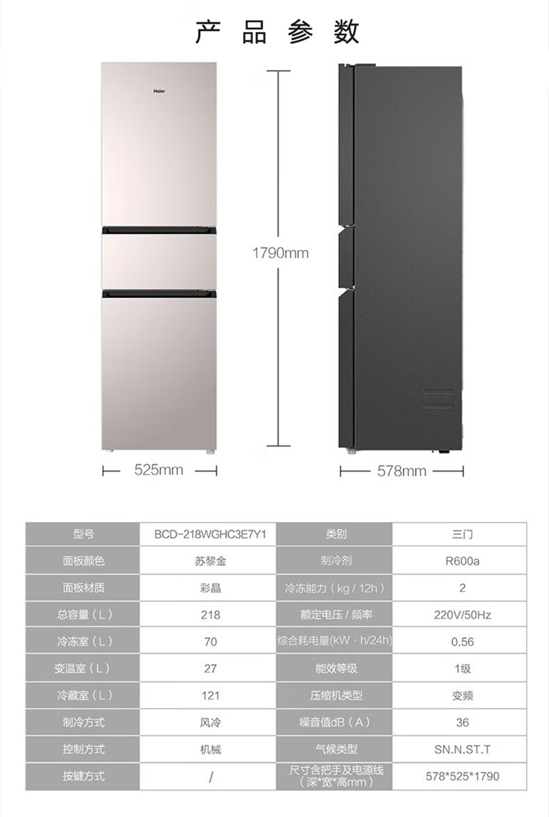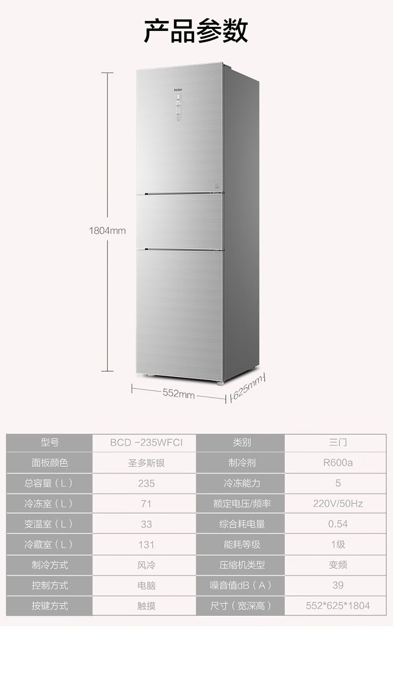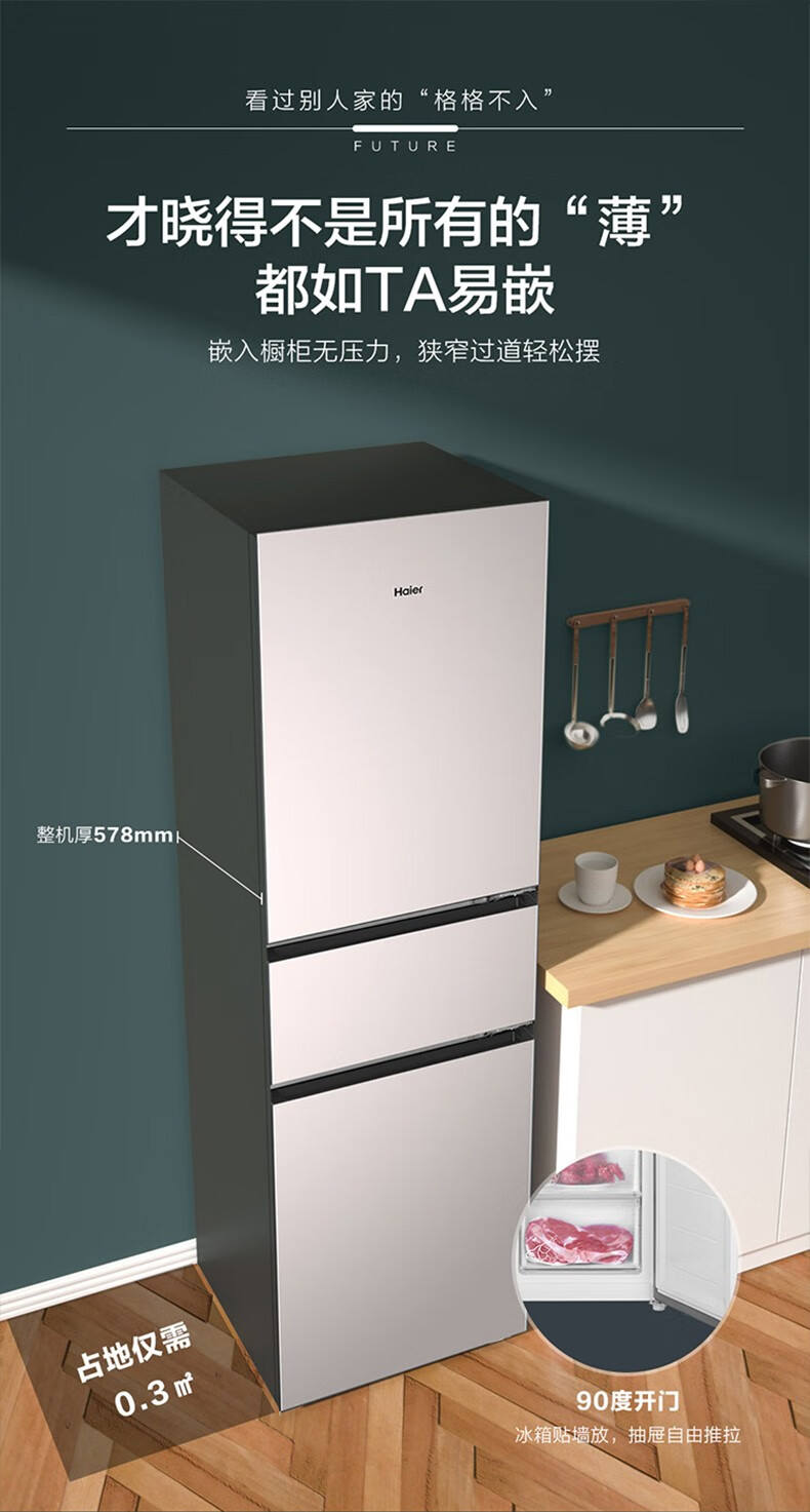 海爾(Haier)超薄電冰箱 235升銀色+彩晶面板BCD-235WFCI