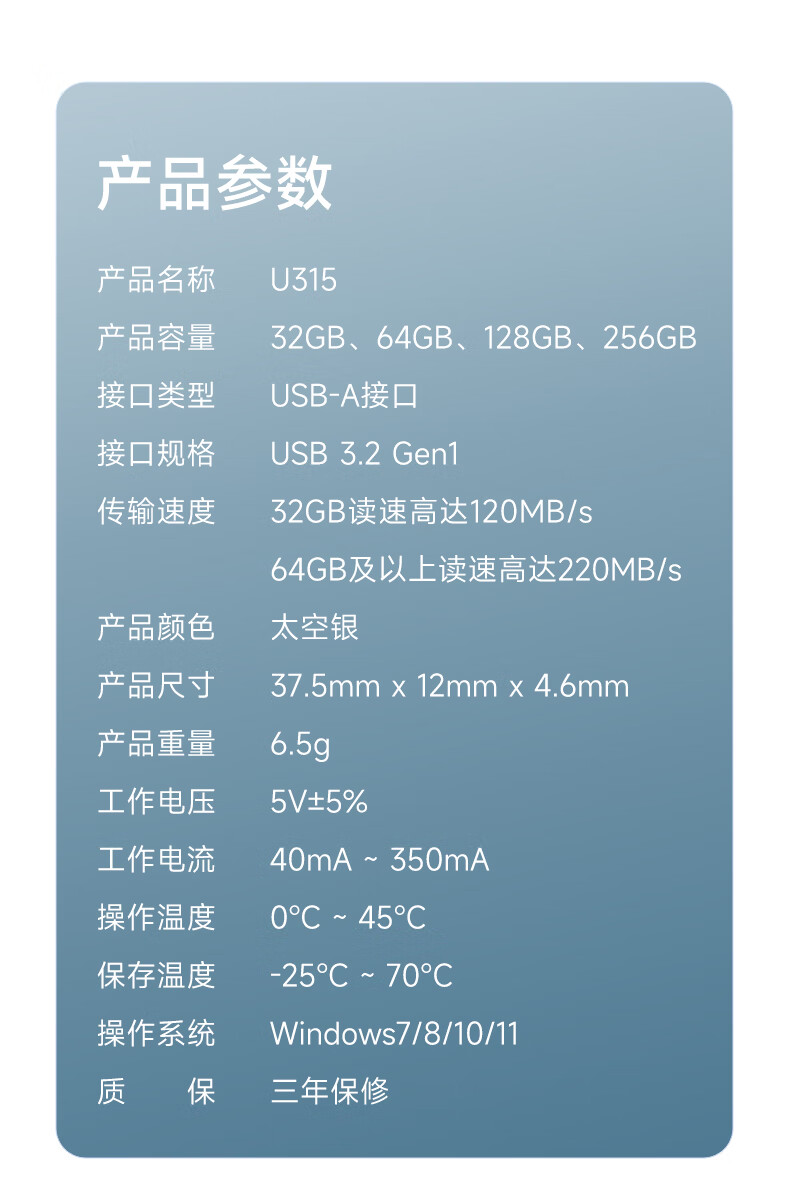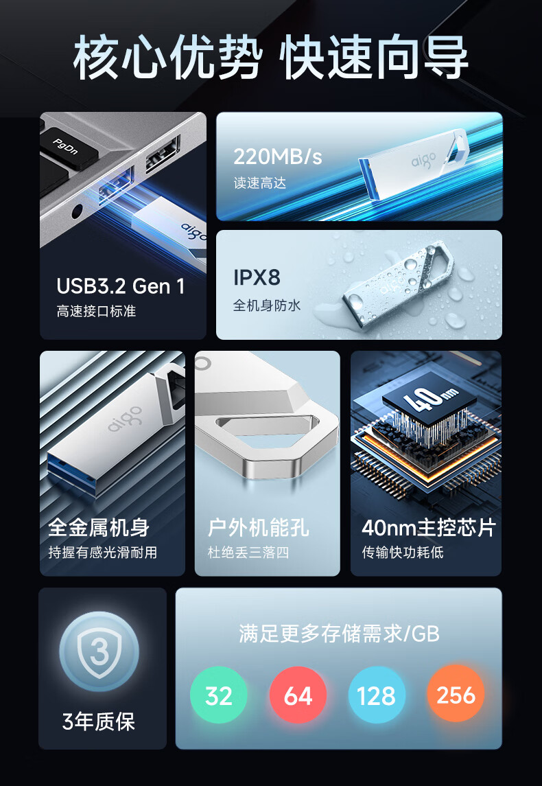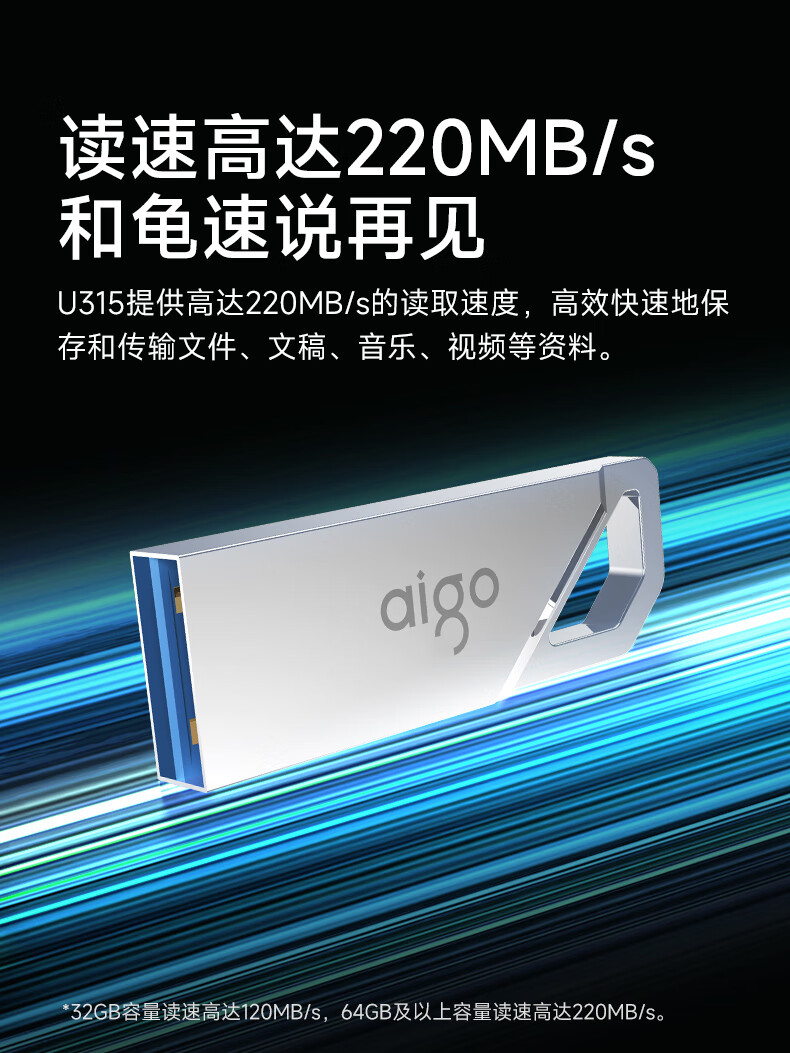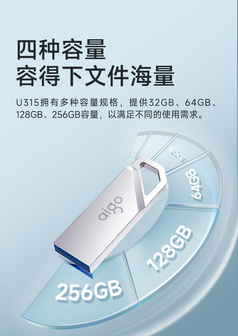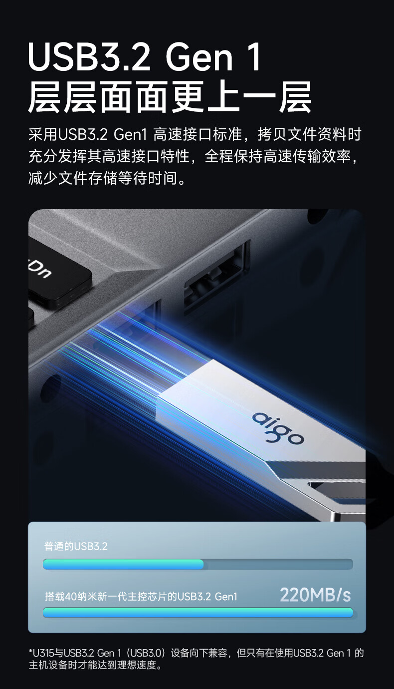 愛(ài)國(guó)者(aigo)256GB USB3.2高速U盤 U315 讀速220MB/s
