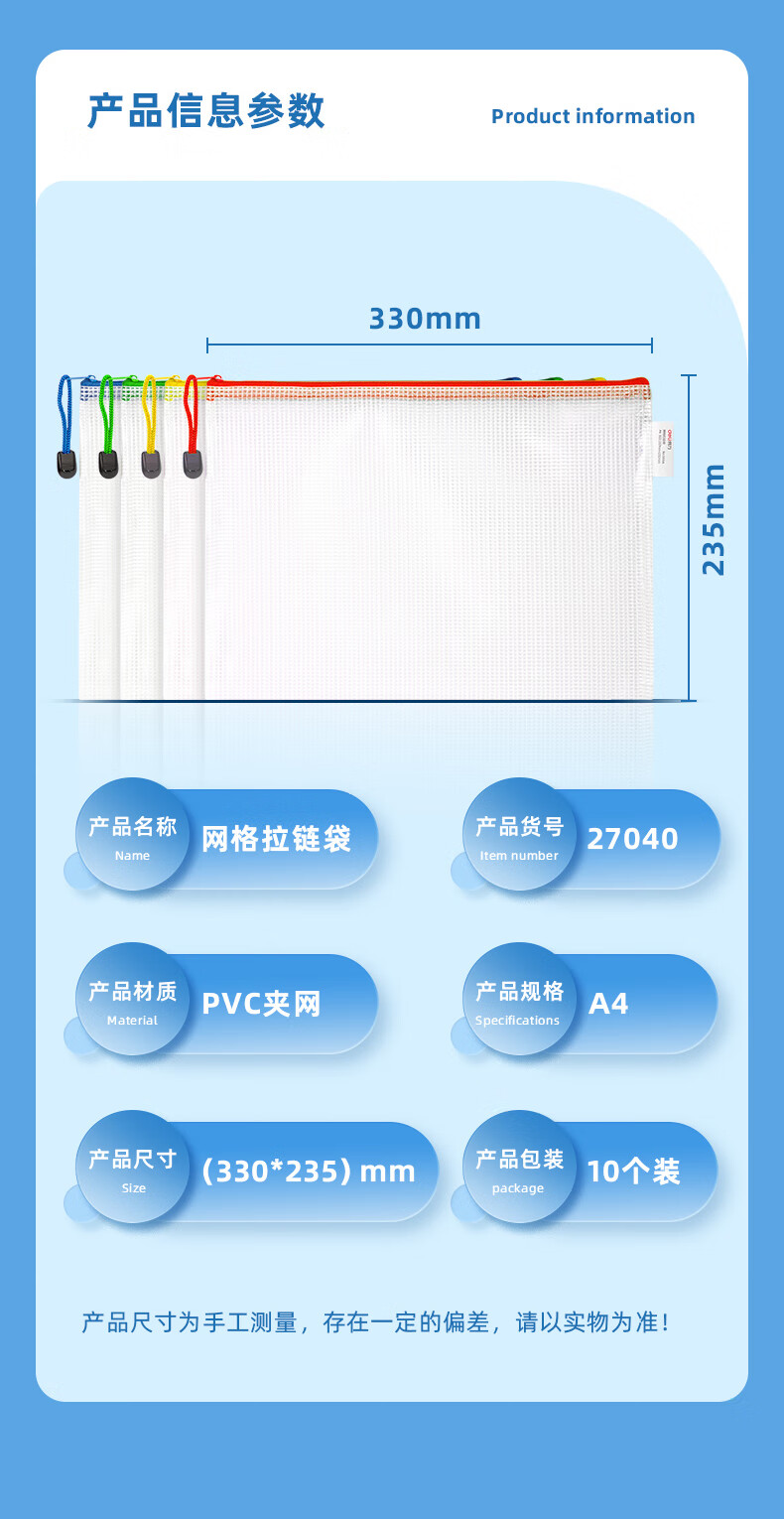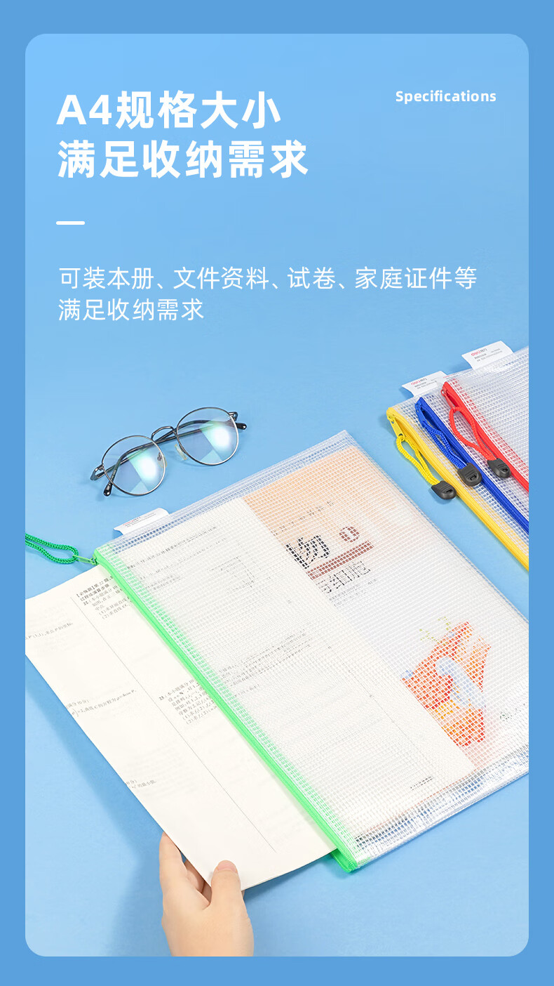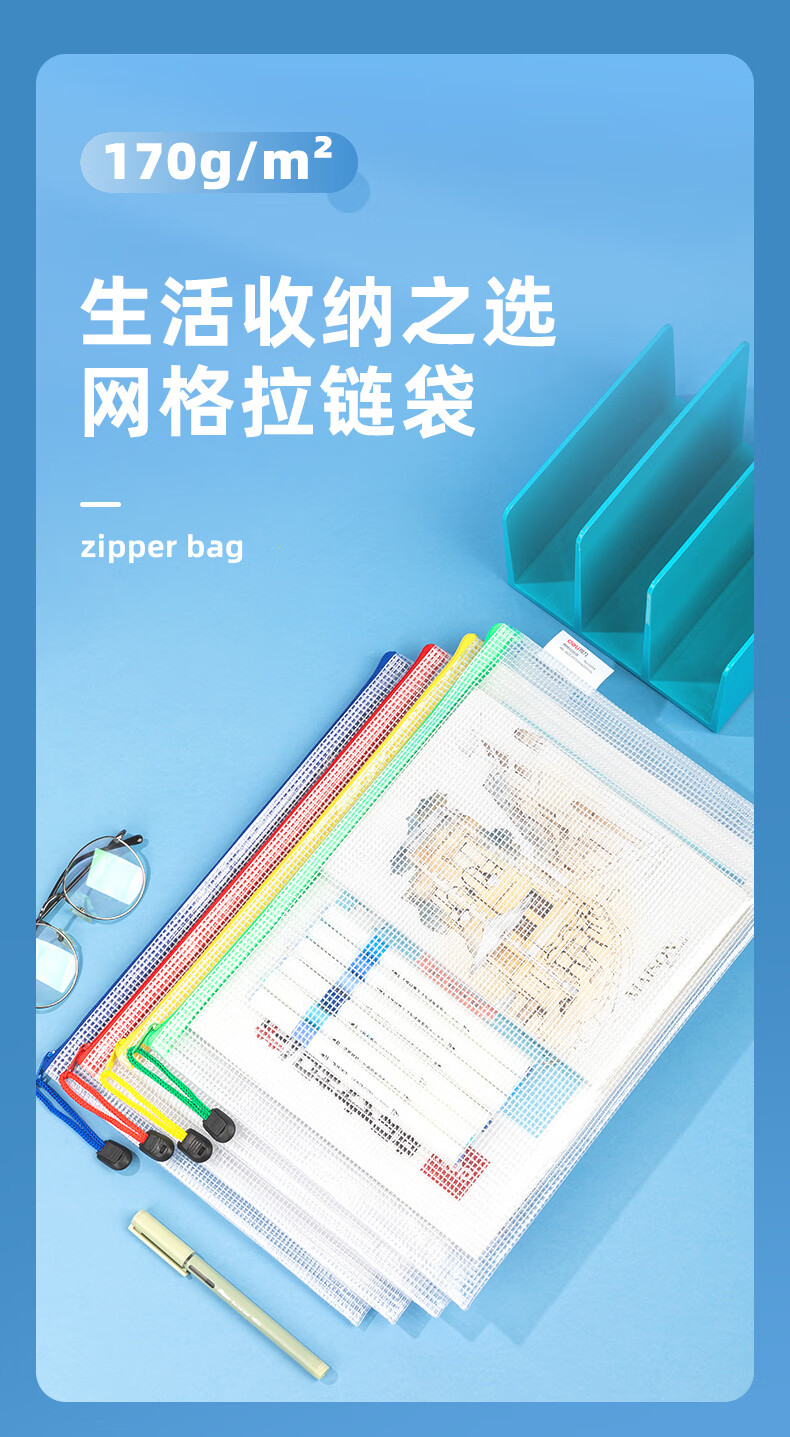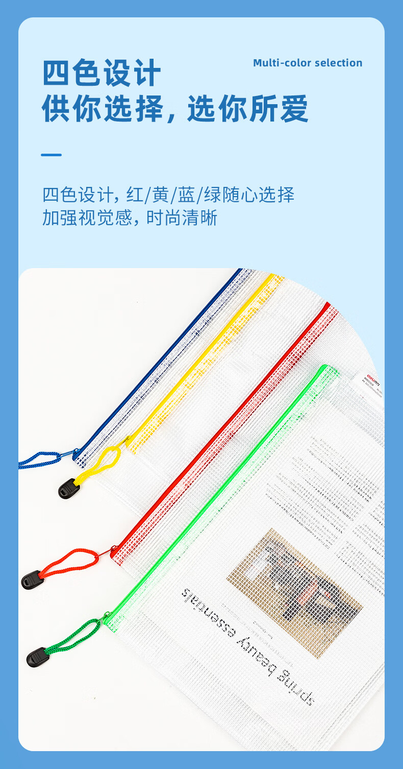 齊心(COMIX) A1154 A4 防潮網(wǎng)格拉鏈袋/文件袋/資料袋 顏色隨機 10個/包
