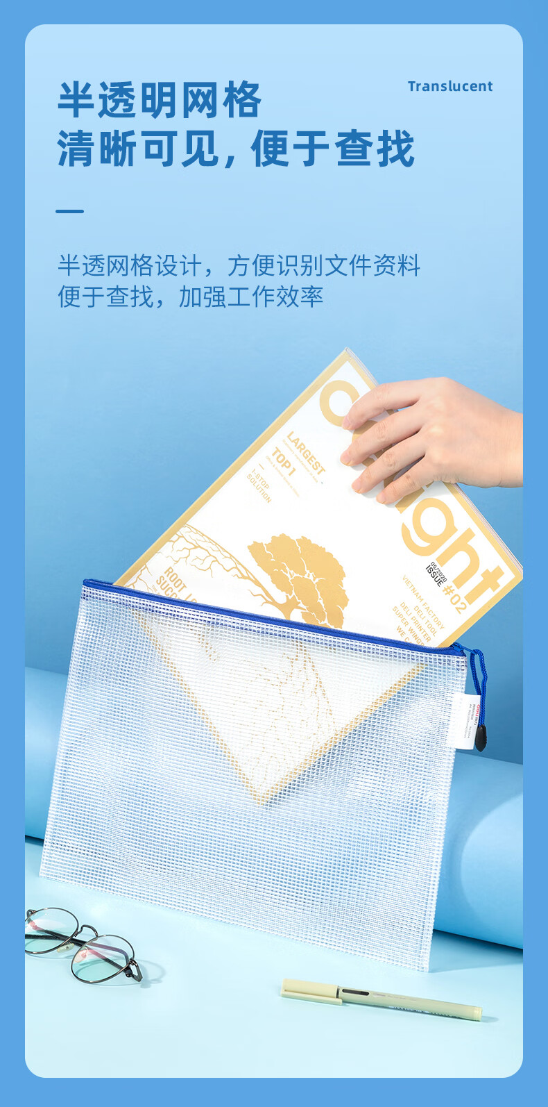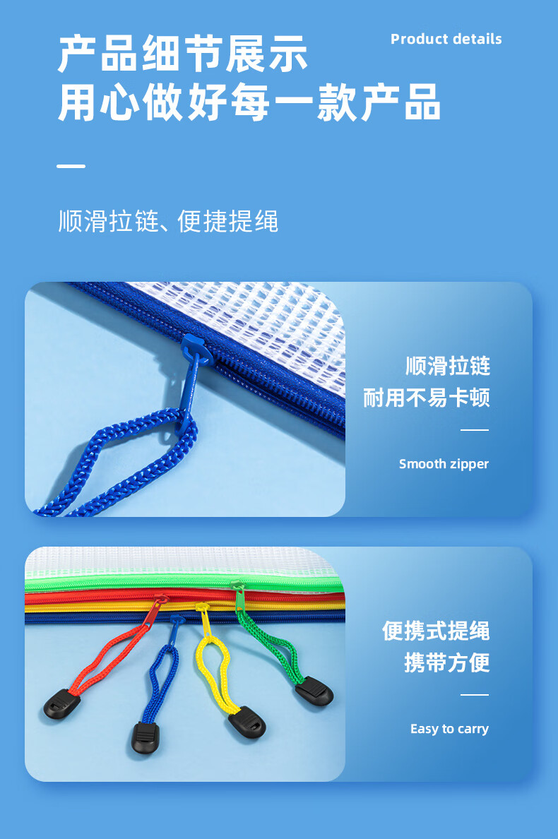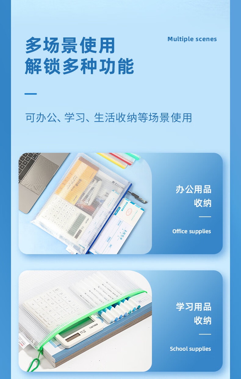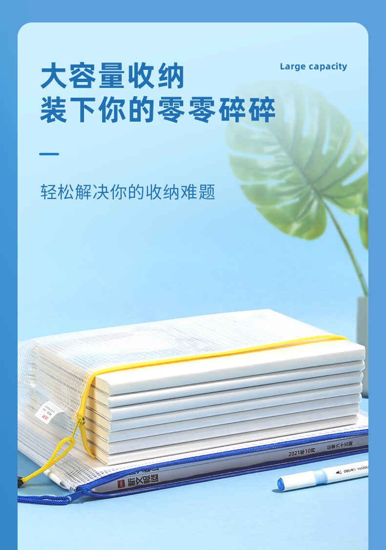 齊心(COMIX) A1154 A4 防潮網(wǎng)格拉鏈袋/文件袋/資料袋 顏色隨機 10個/包