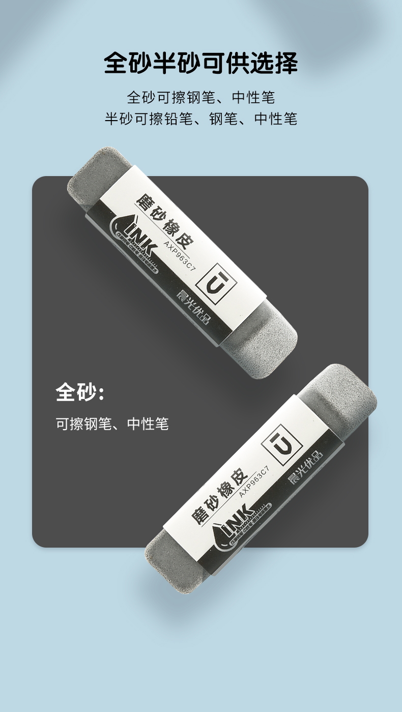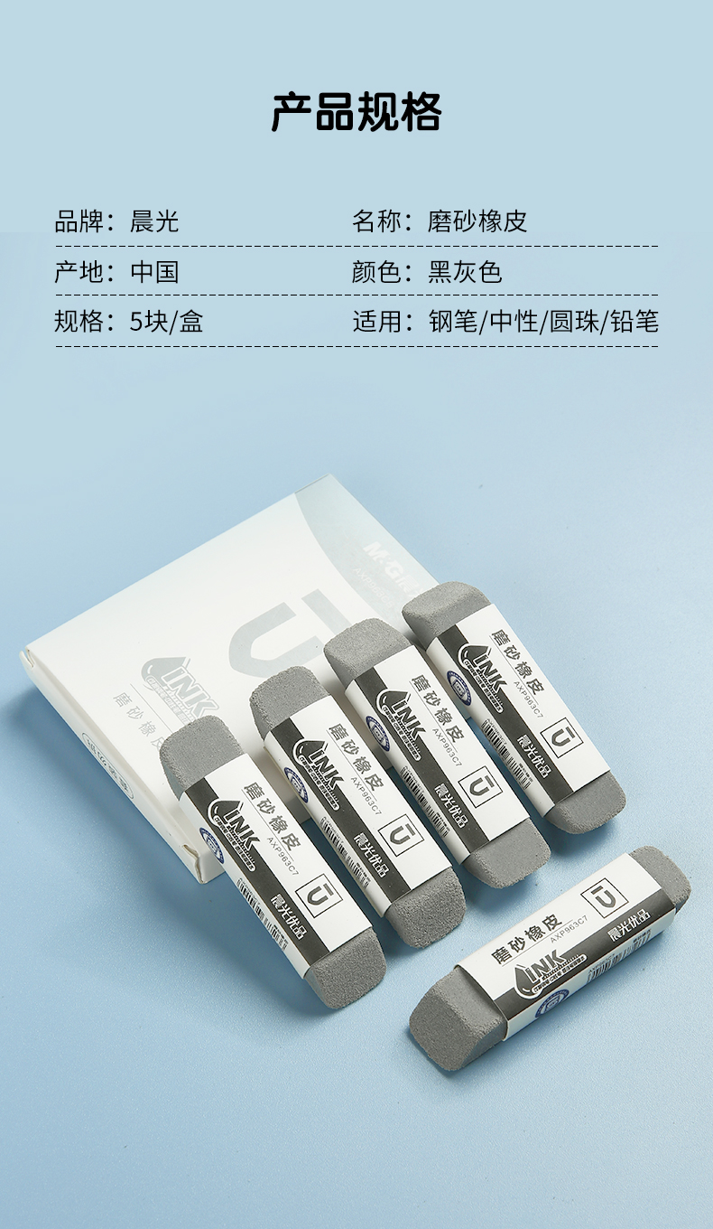 晨光(M&G)文具鋼筆橡皮5塊裝 精品全沙磨砂橡皮擦 AXP963CB