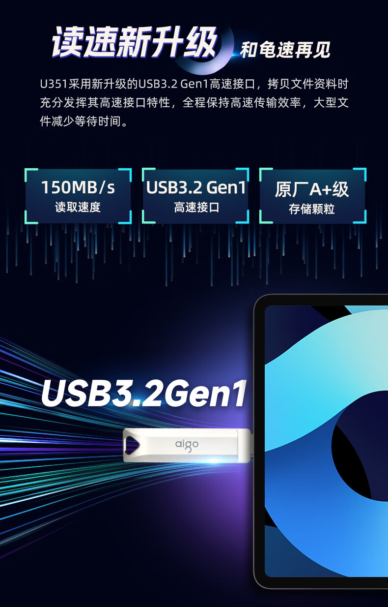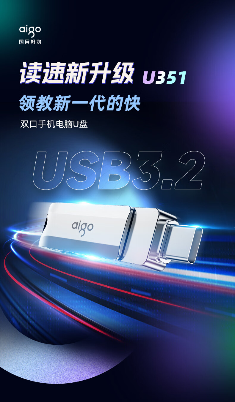 愛國者(aigo)128GB Type-C USB3.2 U盤 U322