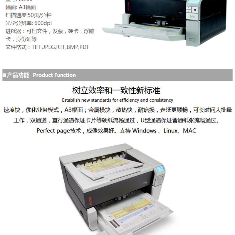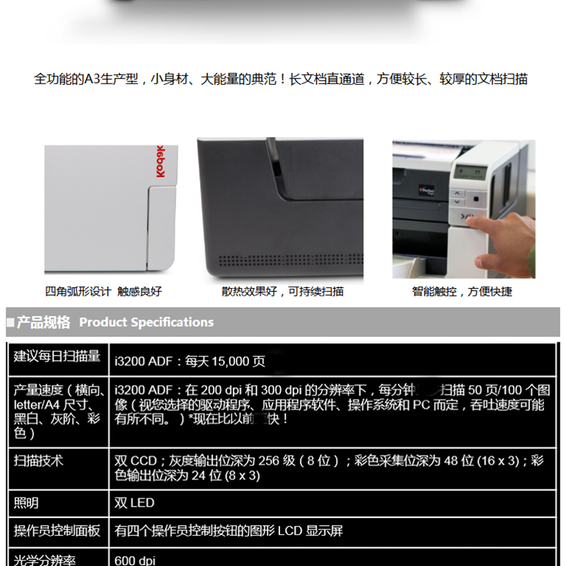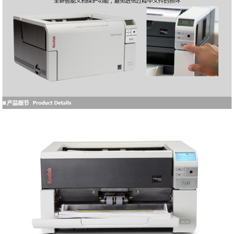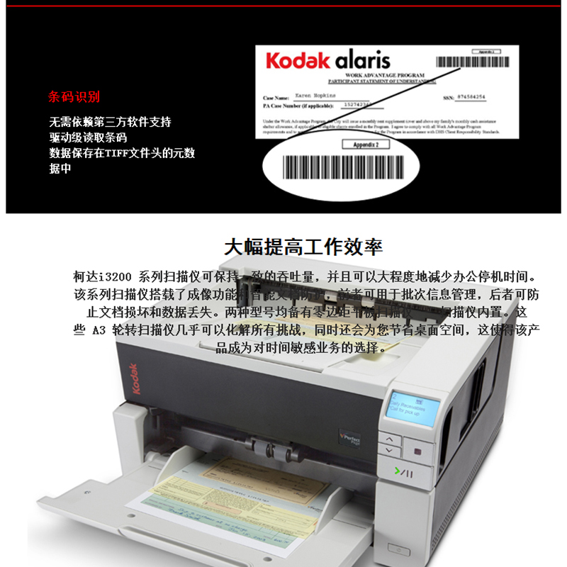 柯達(dá)(Kodak) i3200 A3幅面饋紙式掃描儀 快速自動進(jìn)紙高掃雙面