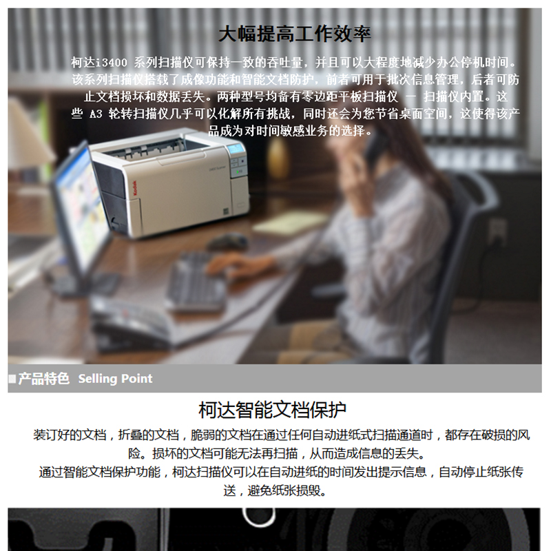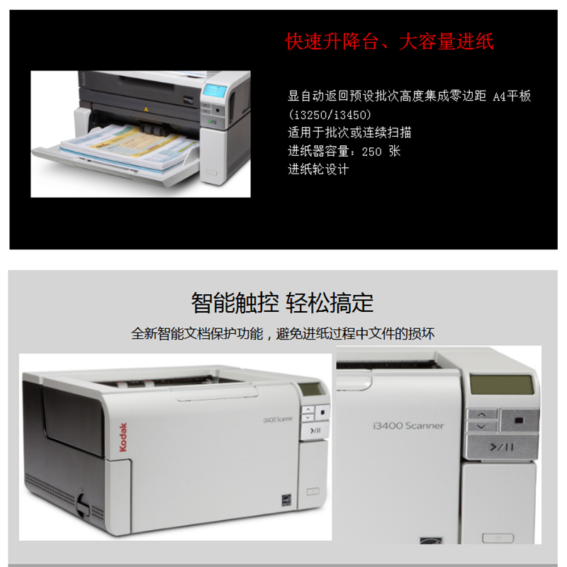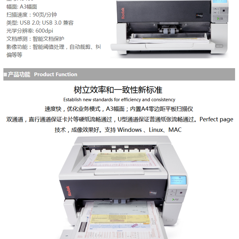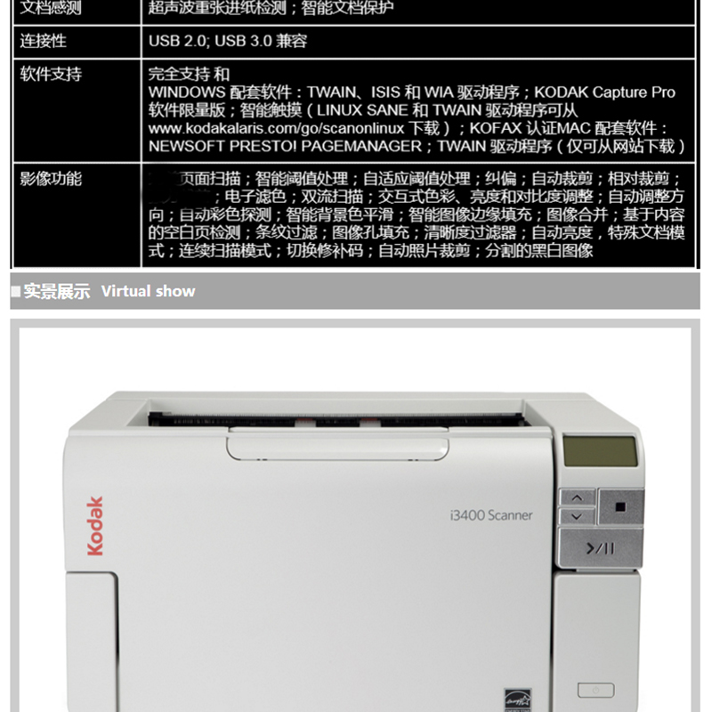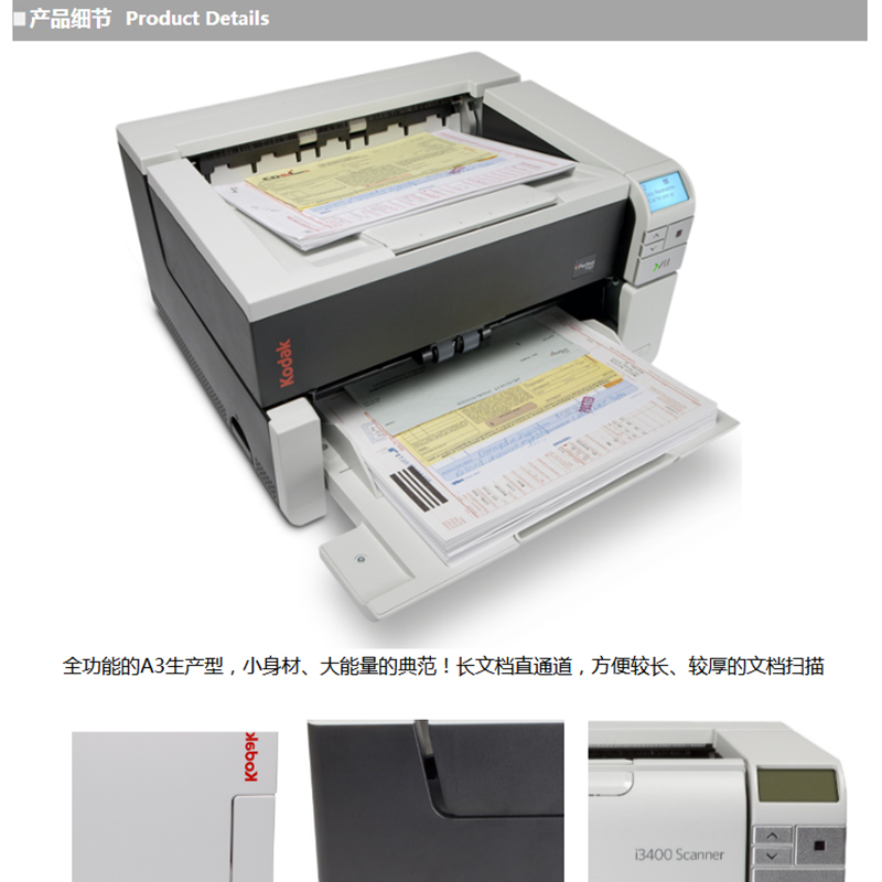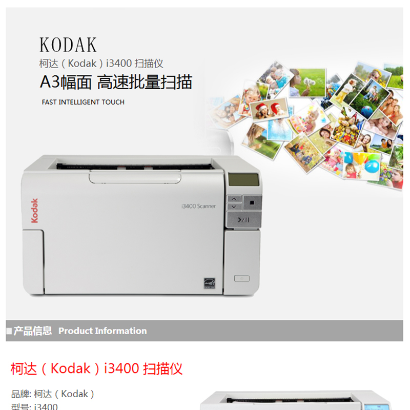 柯達(dá)(Kodak) i3400 A3幅面饋紙式掃描儀 快速自動(dòng)進(jìn)紙高掃雙面
