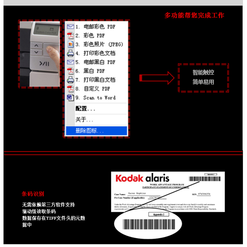 每分鐘掃描可達(dá)90頁,智能閾值處理,自動(dòng)裁剪、糾偏 ?
