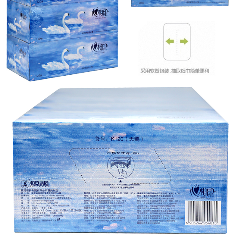 心相?。∕ind Act Upon Mind) K120 天鵝系列盒裝抽紙面巾紙餐巾紙2層*120抽*6盒