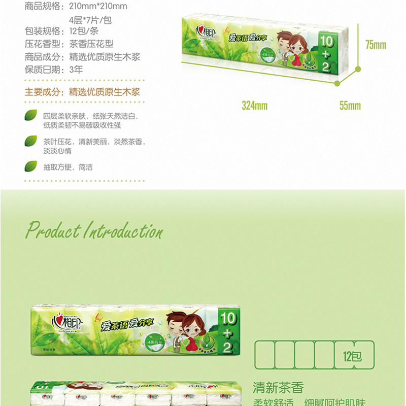 心相印(Mind Act Upon Mind) C1710 茶語(yǔ)系列四層餐巾紙手帕紙12包/條