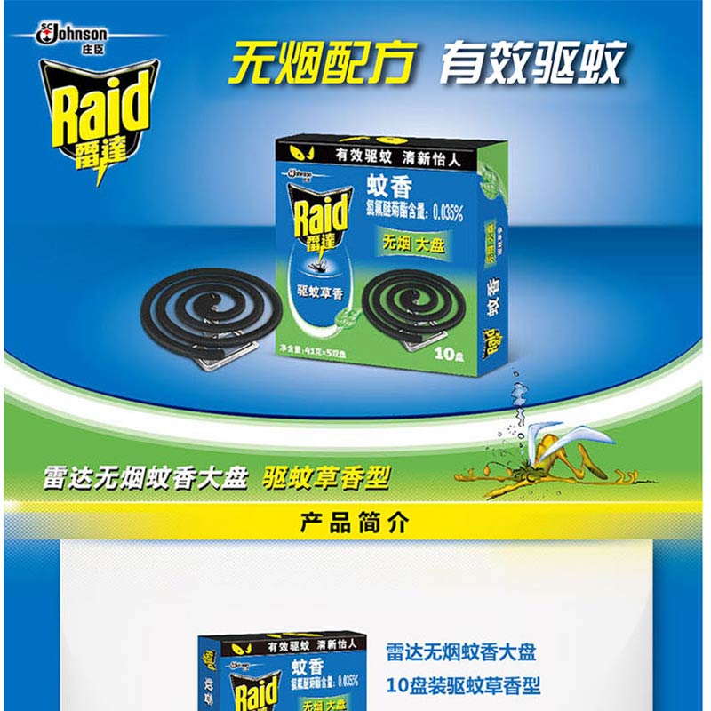 雷達(dá)(Raid) 蚊香無煙 大盤 驅(qū)蚊草香型 10盤