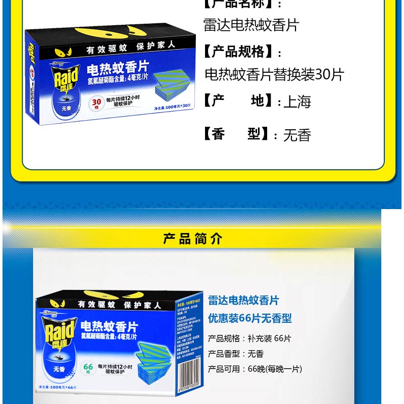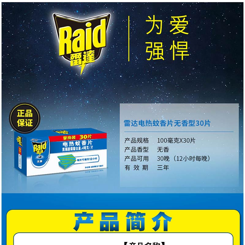 雷達(Raid) 無香型電熱蚊香片 30片/盒
