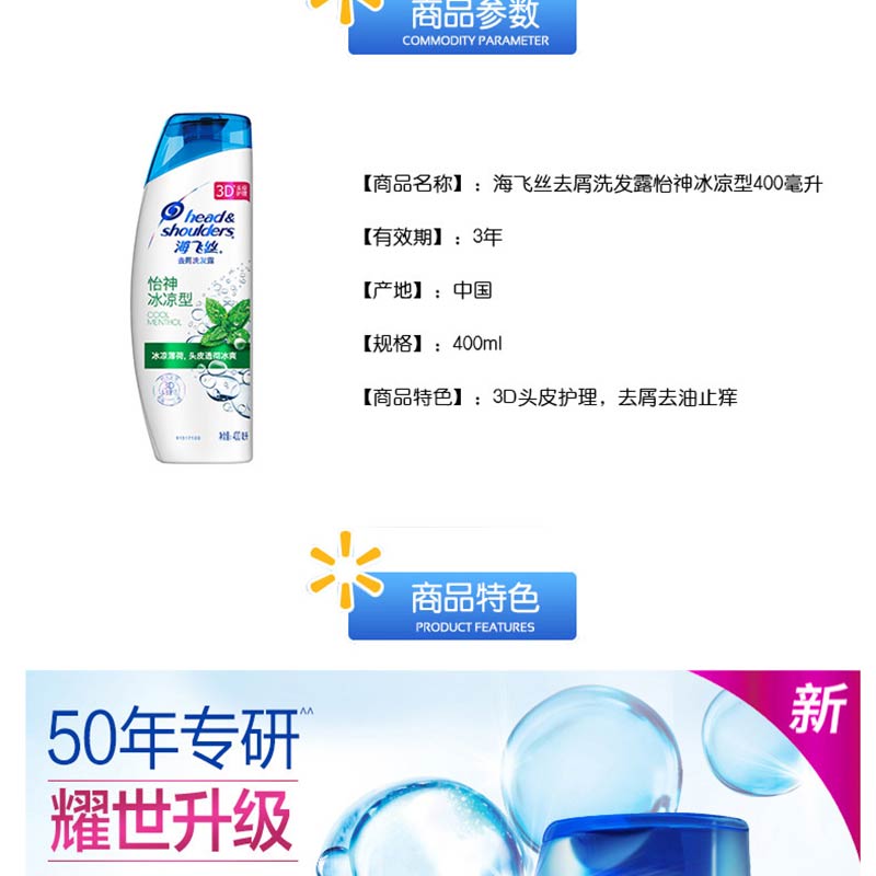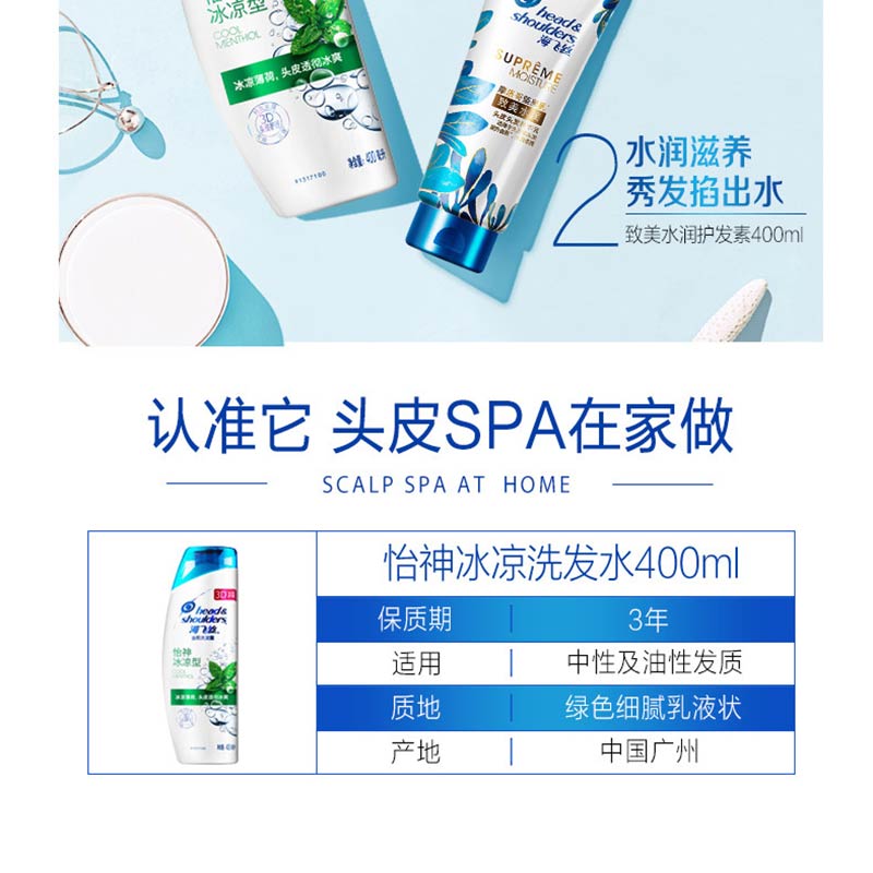 海飛絲 洗發(fā)水洗發(fā)露 怡神冰涼型400ml