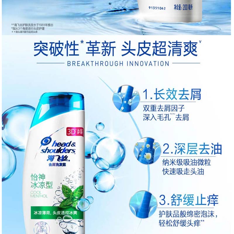 海飛絲 洗發(fā)水洗發(fā)露 怡神冰涼型200ml