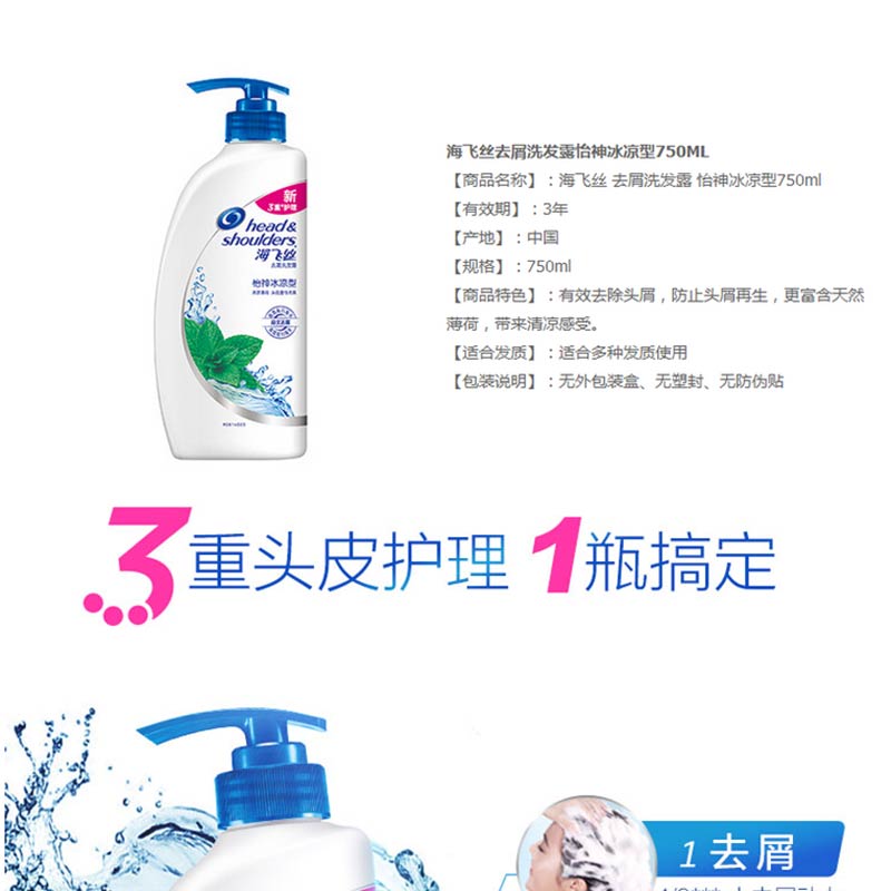 海飛絲 洗發(fā)水洗發(fā)露 怡神冰涼型750ml