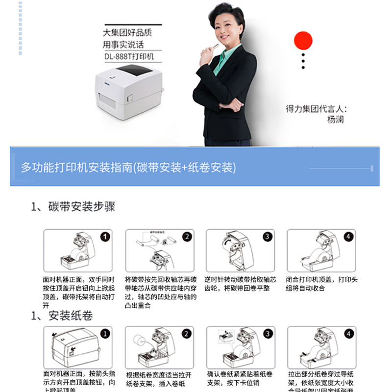得力(deli) DL-888T 熱敏熱轉(zhuǎn)印標簽打印機 電子面單小票不干膠條碼打印機