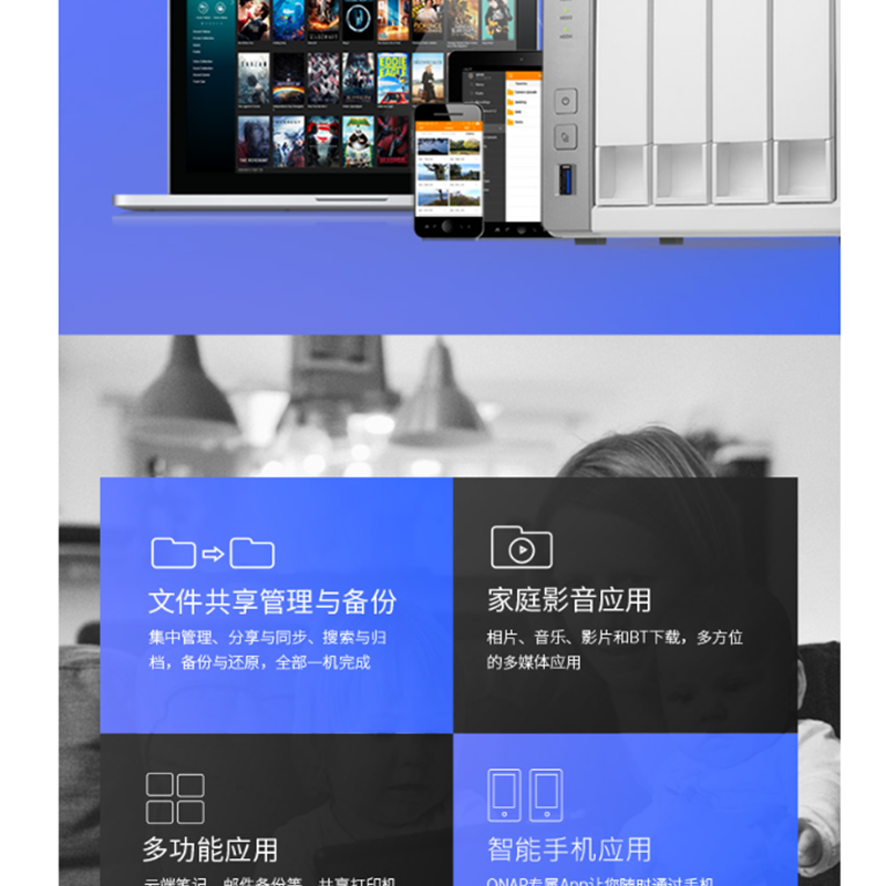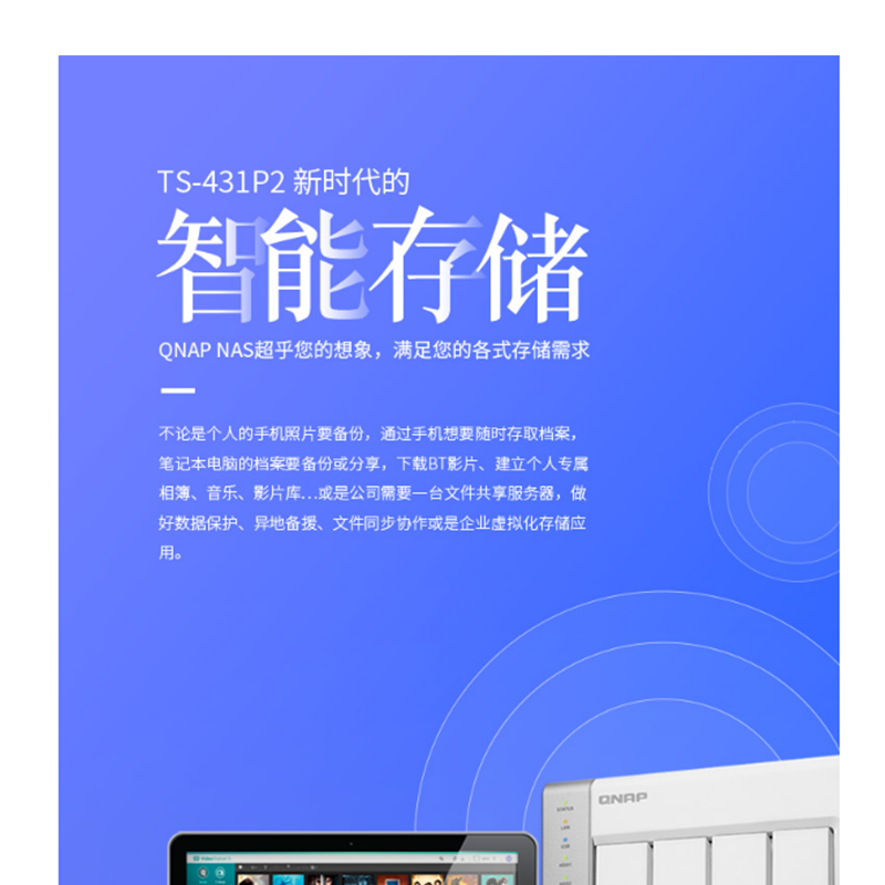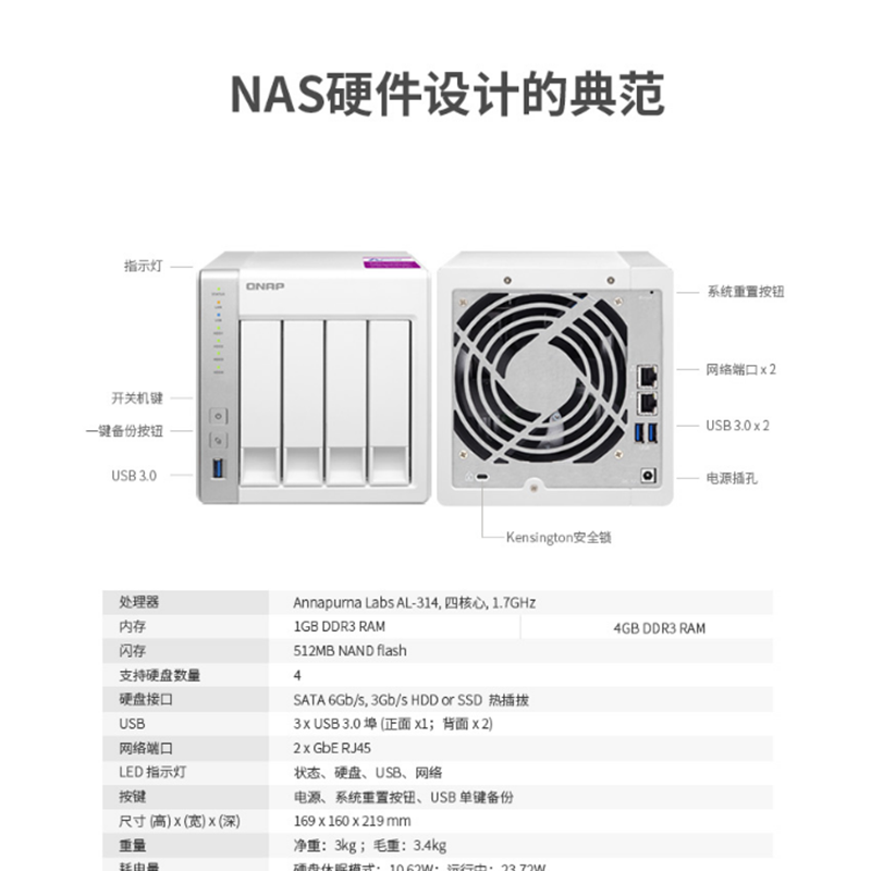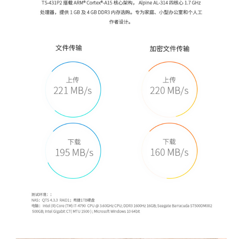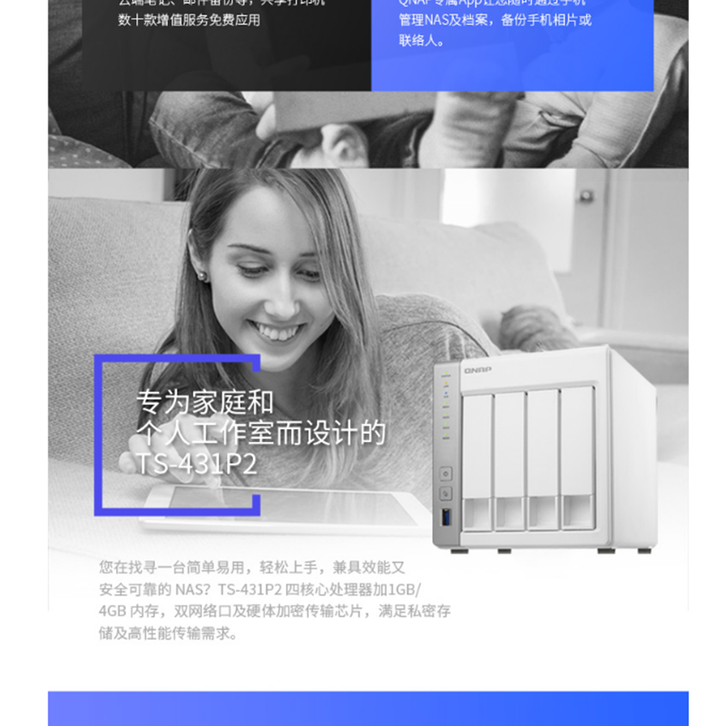 威聯(lián)通(QNAP) TS-431P2 4G內存 四核心處理器 四盤位NAS網絡存儲器雙網絡端口