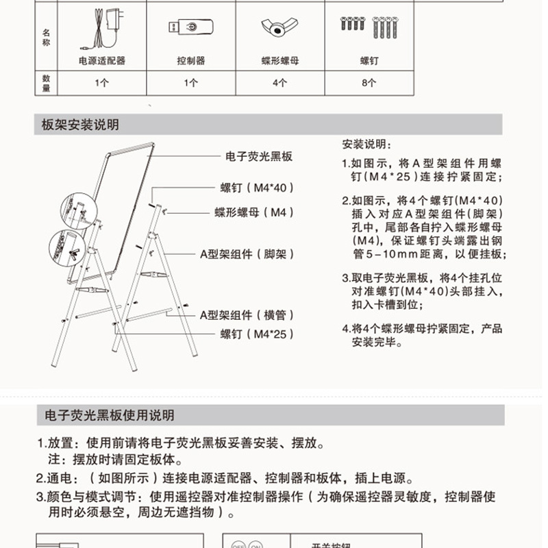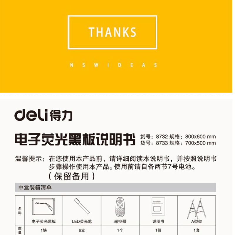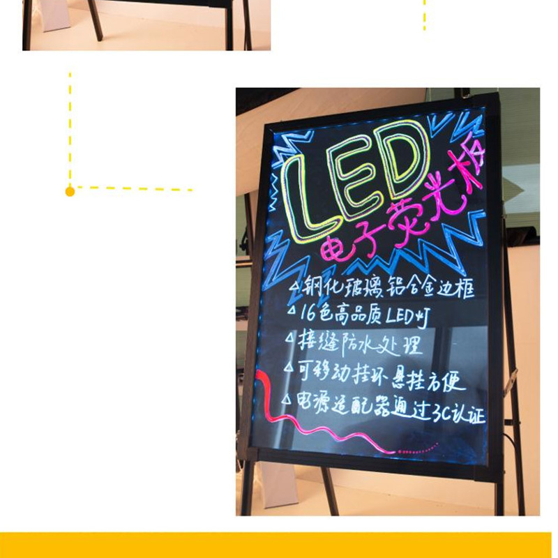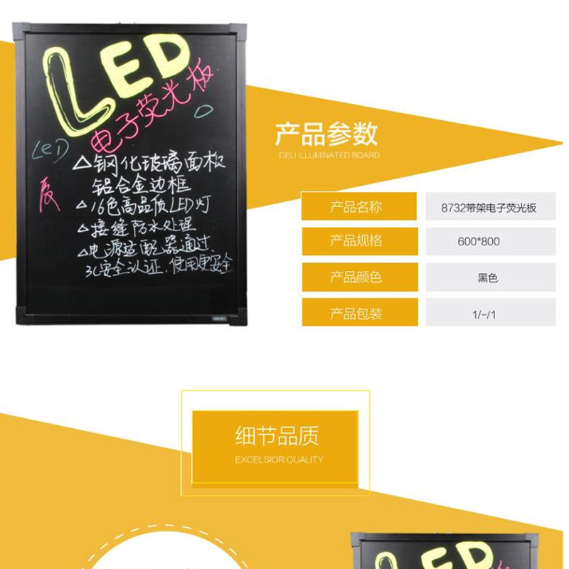 得力(deli) 8732 60*80cm帶架子電子熒光黑板/白板 LED燈手寫廣告牌/熒光板
