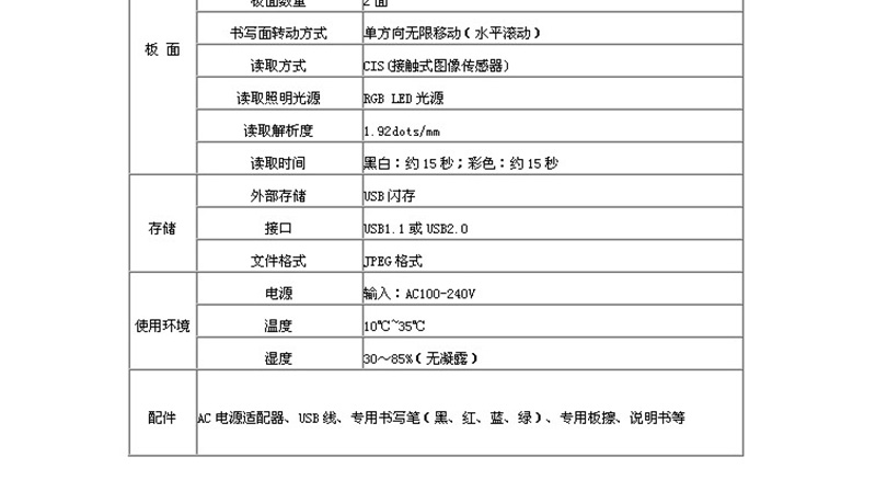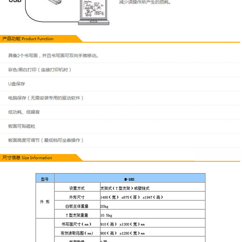 書寫面積:910x1300mm(雙面),彩色打印,U盤存儲,USB插槽,板面可貼磁粒,雙向手推/電動 ?